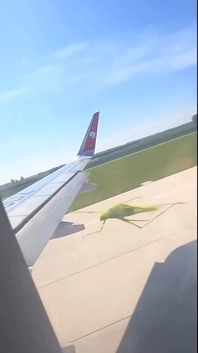 ホモと見る飛行機にしがみつくバッタ