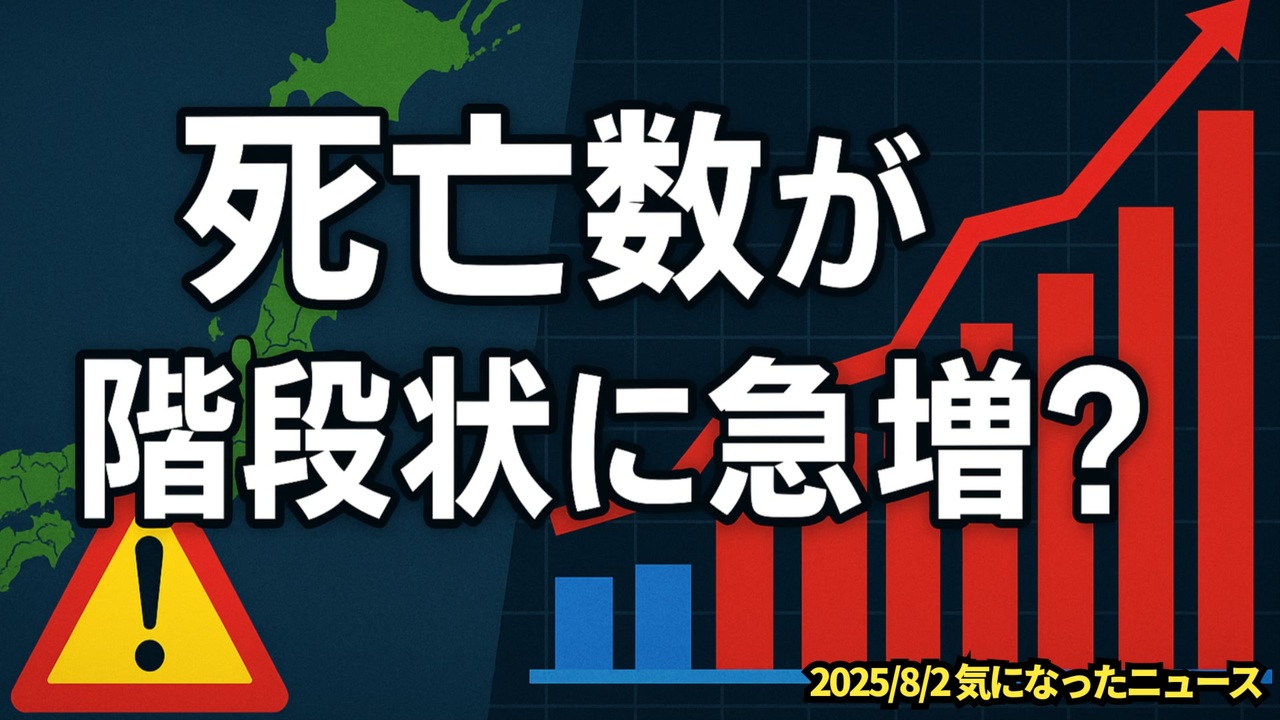 【死亡数が階段状に急増?】◆ ワクチンと死亡数の異常な関係【東京都小金井市データ】<br><a href="https://x.com/Kevin_McKernan/status/1951310463435760023?t=KCrGuhg5l7qmkNOgImP54Q&s=19" target="_blank" rel="noopener nofollow">https://x.com/Kevin_McKernan/status/1951310463435760023?t=KCrGuhg5l7qmkNOgImP54Q&s=19</a><br><br>詳細<br><a href="https://kirschsubstack.com/p/the-single-most-convincing-covid-vaccine-harm-signal" target="_blank" rel="noopener nofollow">https://kirschsubstack.com/p/the-single-most-convincing-covid-vaccine-harm-signal</a><br><br>◆今回の台本<a href="https://keiichiro8140.hatenablog.com/entry/20250802222111" target="_blank" rel="noopener nofollow">https://keiichiro8140.hatenablog.com/entry/20250802222111</a><br><br>◆チャンネル登録よろしくお願いします<a href="https://youtube.com/@k16_888?si=1S8pLN1Tf9bGiJyV" target="_blank" rel="noopener nofollow">https://youtube.com/@k16_888?si=1S8pLN1Tf9bGiJyV</a><br><br>◆もしも(BAN)の時のためのマイリンク集<a href="https://lit.link/K16_888" target="_blank" rel="noopener nofollow">https://lit.link/K16_888</a><br><br>気になったニュース 2025/8/2<br><br><br />著作権、肖像権に配慮して作成しております。<br><br>◆気になったニュースの台本!?<br>メモ代わりに作った台本をそのままあげてます<br><a href="https://keiichiro8140.hatenablog.com/." target="_blank" rel="noopener nofollow">https://keiichiro8140.hatenablog.com/.</a><br><br><br>ここからはシリーズ紹介<br><br><br>◆ ワクチン解毒・デトックス<br><a href="https://x.gd/fZweg" target="_blank" rel="noopener nofollow">https://x.gd/fZweg</a><br><br>◆ウイリアム・マキス博士のがん治療(イベルメクチン・フェンベンダゾール等)<br><a href="https://x.gd/AtFYS" target="_blank" rel="noopener nofollow">https://x.gd/AtFYS</a><br><br>◆予防接種健康被害救済制度<br><a href="https://x.gd/0xK9x" target="_blank" rel="noopener nofollow">https://x.gd/0xK9x</a><br><br>◆気になったニュース #1501~<br><br>◆ 【ショートver】気になったニュース<br><a href="https://x.gd/7MxXC" target="_blank" rel="noopener nofollow">https://x.gd/7MxXC</a><br><br>◆ 気になったニュース #1001~<br><a href="https://x.gd/Lp8gv" target="_blank" rel="noopener nofollow">https://x.gd/Lp8gv</a><br><br>◆ 気になったニュース #501~<br><a href="https://x.gd/EmbS4" target="_blank" rel="noopener nofollow">https://x.gd/EmbS4</a><br><br>◆ 気になったニュース #1~#500<br><a href="https://x.gd/uPhNb" target="_blank" rel="noopener nofollow">https://x.gd/uPhNb</a><br><br>◆ X(旧Twitter)・テレグラムで気になった情報<br><a href="https://x.gd/YG6FT" target="_blank" rel="noopener nofollow">https://x.gd/YG6FT</a><br><br>◆ 日比谷5万人パレードデ⚪生放送アーカイブ動画<br><a href="https://x.gd/3CHJv" target="_blank" rel="noopener nofollow">https://x.gd/3CHJv</a><br><br>◆日比谷5万人パレード⚪モのマイリスト作ってみました<br><a href="https://nico.ms/mylist/76828848?ref=sp_other" target="_blank" rel="noopener nofollow">https://nico.ms/mylist/76828848?ref=sp_other</a><br><br>◆3.30 令和の百姓⚪⚪<br><a href="https://www.nicovideo.jp/series/511791?ref=garage_share_other" target="_blank" rel="noopener nofollow">https://www.nicovideo.jp/series/511791?ref=garage_share_other</a><br><br>◆ 及川幸久さんの【XNEWS】シリーズ<br><a href="https://x.gd/3k78K" target="_blank" rel="noopener nofollow">https://x.gd/3k78K</a><br><br>◆これまでの動画<a href="https://x.gd/sPXoJ" target="_blank" rel="noopener nofollow">https://x.gd/sPXoJ</a><br><br>◆もしも(BAN)の時のためのマイリンク集<a href="https://lit.link/K-16_News44" target="_blank" rel="noopener nofollow">https://lit.link/K-16_News44</a><br><br>
