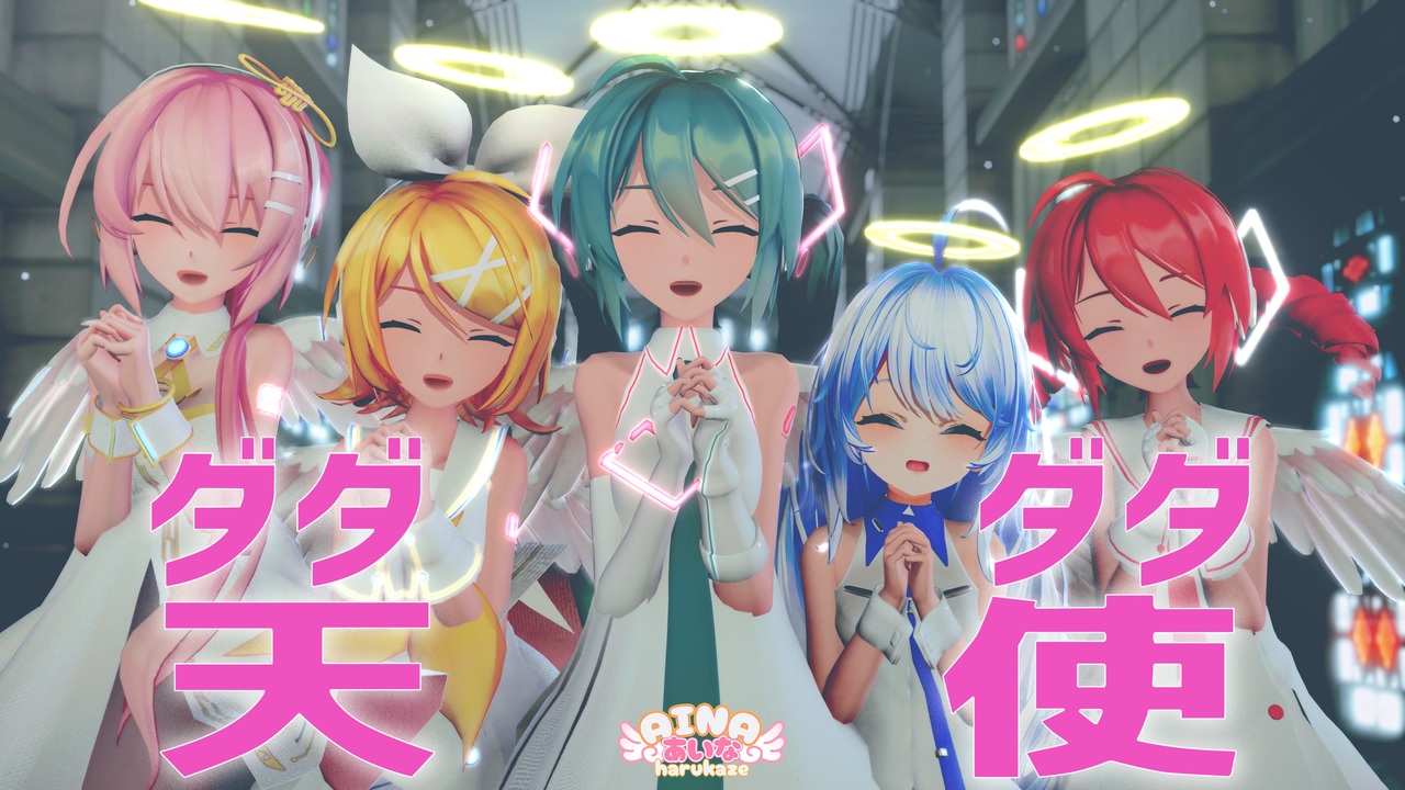 ☆3000再生達成~見て頂いた皆さんほんとにありがとうございます☆<br>今回は5人で天使に~♪ 可愛くて楽しい曲シリーズです~( 〃 ❛ᴗ❛ 〃 ) <br>ちょっと衣装が暴れ気味で思ってたより時間がかかっちゃいました~(^_^;) <br>モーション調整、カメラを5人仕様に少し改変しています~ <br>まだまだ色々ダメダメな所が多いのですけど、見て頂けたら嬉しいです~( 〃 ❛ᴗ❛ 〃 ) <br><br>4K動画はこちらへ↓<br><a href="https://www.youtube.com/@AIna-channel" target="_blank" rel="noopener nofollow">https://www.youtube.com/@AIna-channel</a><br><br>今回お借りしてる情報は↓へ♪ <br>楽曲:ダダダダ天使 / ナナヲアカリ様/ <a href="https://www.nicovideo.jp/watch/sm31667442" class="watch">sm31667442</a><br>モーション:にわとりP様/ <a href="https://www.nicovideo.jp/watch/sm35888607" class="watch">sm35888607</a><br>振付:星野理科様/ <a href="https://www.nicovideo.jp/watch/sm31936076" class="watch">sm31936076</a><br>振付アレンジ/トレース元:兮白様/ <a href="https://www.nicovideo.jp/watch/sm32176048" class="watch">sm32176048</a><br>カメラ:えいちゃん様/ <a href="https://www.nicovideo.jp/watch/sm35900339" class="watch">sm35900339</a><br>(春風あいな-改変)<br>☆ツール☆ <br>MMD/MME/Premiere pro VMDサイジング:miu様<br>☆モデル☆ <br>Sour式初音ミク & 鏡音リン & 巡音ルカ:Sour暄様 <a href="https://www.nicovideo.jp/user/25576836" target="_blank" rel="noopener nofollow">https://www.nicovideo.jp/user/25576836</a> <br>Sour式重音テト:Sour & MozzarellaStix 様<br>あいなモデル:namekuji1337様:<a href="https://x.com/namekuji1337" target="_blank" rel="noopener nofollow">https://x.com/namekuji1337</a> <br>衣装:kumagoro(kumakichi)様/ <a href="https://seiga.nicovideo.jp/seiga/im5972488" target="_blank" rel="noopener">im5972488</a> <br>ピコリ式羽・蝙蝠羽:須々木ピコリ様 / <a href="https://seiga.nicovideo.jp/seiga/im5769910" target="_blank" rel="noopener">im5769910</a><br>天使セット:ながれ様 / <a href="https://seiga.nicovideo.jp/seiga/im5397061" target="_blank" rel="noopener">im5397061</a><br>☆ステージ☆ <br>NOB様: <a href="https://seiga.nicovideo.jp/seiga/im8889679" target="_blank" rel="noopener">im8889679</a><br>ケミリア様:<a href="https://seiga.nicovideo.jp/seiga/im10828060" target="_blank" rel="noopener">im10828060</a><br>スカイドーム:怪獣対若大将P様/ <a href="https://seiga.nicovideo.jp/seiga/im6313734" target="_blank" rel="noopener">im6313734</a><br>☆エフェクト☆<br>Rui様/そぼろ様/less様/おたもん様/針金P様/ましまし様 ikeno様/glam様/化身バレッタ様/ミーフォ茜様<br>Johndoo様/roz様/Sano_様/のりしお様/ビームマンP様/Caeru様/ame2様<br>更科様<br><br>お借りさせて頂いている皆様~いつもありがとうございます!<br>動画を見て頂いている皆様~まだまだ調整の甘いお勉強中のあいなですけど、いつもほんとうにありがとうございます!<br><br>追記☆<br>広告ありがとうございます!文字数制限で記載は↓へ♪<br><a href="https://x.com/AinaHarukaze" target="_blank" rel="noopener nofollow">https://x.com/AinaHarukaze</a><br>コメント・いいね・マイリス、ありがとうございます!<br>