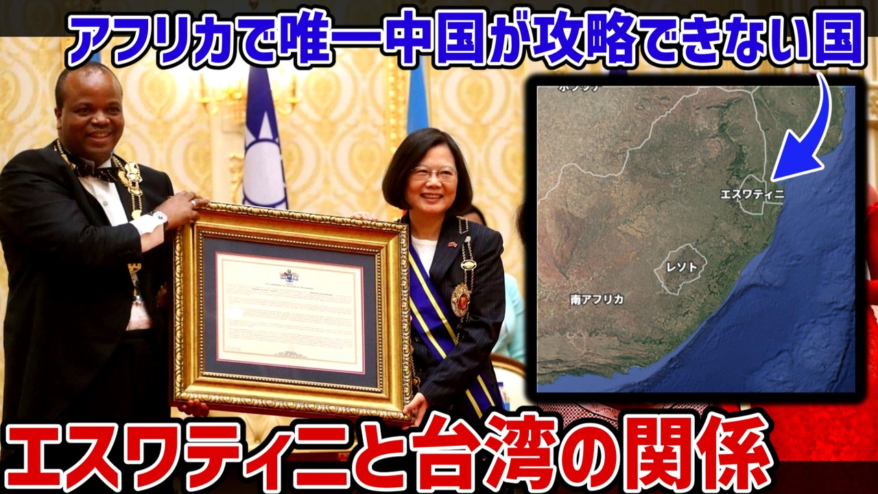 <br>今や世界でも珍しくなった台湾を国家承認している国がアフリカに一つだけあるらしい。<br><br>てことで今回はそんなエスワティニについて解説してみました~<br><br><br>動画作製引用元URLまとめ <br><a href="https://note.com/africarner1960/n/n9ee7bcdd92c0" target="_blank" rel="noopener nofollow">https://note.com/africarner1960/n/n9ee7bcdd92c0</a><br><br>◆Twitter <a href="https://twitter.com/AfrikaanerMaris" target="_blank" rel="noopener nofollow">https://twitter.com/AfrikaanerMaris</a> <br>◆マイリスト <a href="https://www.nicovideo.jp/mylist/73354161" target="_blank" rel="noopener nofollow">https://www.nicovideo.jp/mylist/73354161</a><br>