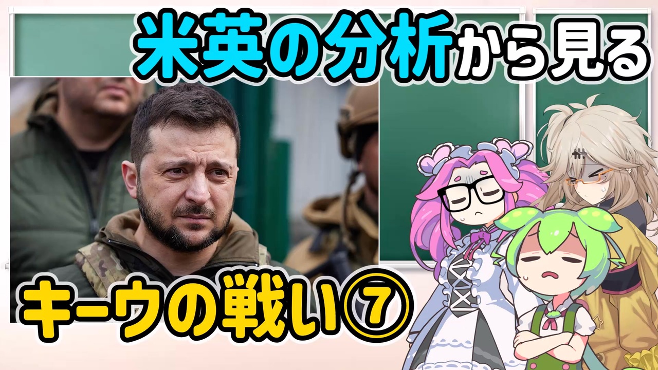 2022年2月~4月のキーウの戦いをまとめました。<br>今回は全体のまとめと考察とブチャ事件を取り上げます。<br>次回は作者あとがきを8/8(金)~10(日)のどこかで投稿予定。<br>休戦交渉を盛り込み忘れたので作者あとがきと一緒に出します・・・<br><br>VOICEVOX:ずんだもん、四国めたん、春日部つむぎ <br><br>【初回】<a href="https://www.nicovideo.jp/watch/sm45105835" class="watch">sm45105835</a><br>【前回】<a href="https://www.nicovideo.jp/watch/sm45223173" class="watch">sm45223173</a><br>【次回】<a href="https://www.nicovideo.jp/watch/sm45269237" class="watch">sm45269237</a>
