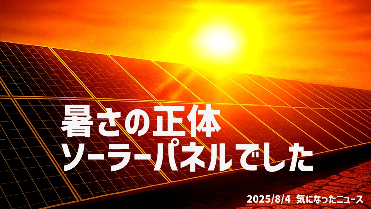 全国各地で続く猛暑。その影で静かに進んでいた“ある政策”が、いま気温上昇の一因として疑問視されています。<br>テレビは「気候変動」とだけ報じていますが、本当にそれだけでしょうか?<br><br>森林を削って設置された無数の太陽光パネル。<br>環境にやさしいはずの再生可能エネルギーが、実は“灼熱の原因”になっているとしたら?<br><br>気づかぬうちに進む利権構造。<br>メガソーラーと補助金、そして中国との関係。<br>「エコ」とは名ばかりの政策により、日本はどこへ向かうのか。<br><br>いま、日本の夏が変わろうとしています。<br>その真相を、あなたはもう知っていますか?<br><br><br>◆暑さの正体、ソーラーパネルでした<a href="https://x.com/natsuki_aoi123/status/1951428505121816614?t=JtJ8OKqznjDjHOIncbJy4g&s=19" target="_blank" rel="noopener nofollow">https://x.com/natsuki_aoi123/status/1951428505121816614?t=JtJ8OKqznjDjHOIncbJy4g&s=19</a><br><br>◆今回の台本<a href="https://keiichiro8140.hatenablog.com/entry/20250804444111" target="_blank" rel="noopener nofollow">https://keiichiro8140.hatenablog.com/entry/20250804444111</a><br><br>◆チャンネル登録よろしくお願いします<a href="https://youtube.com/@k16_888?si=1S8pLN1Tf9bGiJyV" target="_blank" rel="noopener nofollow">https://youtube.com/@k16_888?si=1S8pLN1Tf9bGiJyV</a><br><br>◆もしも(BAN)の時のためのマイリンク集<a href="https://lit.link/K16_888" target="_blank" rel="noopener nofollow">https://lit.link/K16_888</a><br><br>気になったニュース 2025/8/4<br><br><br />著作権、肖像権に配慮して作成しております。<br><br>◆気になったニュースの台本!?<br>メモ代わりに作った台本をそのままあげてます<br><a href="https://keiichiro8140.hatenablog.com/." target="_blank" rel="noopener nofollow">https://keiichiro8140.hatenablog.com/.</a><br><br><br>ここからはシリーズ紹介<br><br><br>◆ ワクチン解毒・デトックス<br><a href="https://x.gd/fZweg" target="_blank" rel="noopener nofollow">https://x.gd/fZweg</a><br><br>◆ウイリアム・マキス博士のがん治療(イベルメクチン・フェンベンダゾール等)<br><a href="https://x.gd/AtFYS" target="_blank" rel="noopener nofollow">https://x.gd/AtFYS</a><br><br>◆予防接種健康被害救済制度<br><a href="https://x.gd/0xK9x" target="_blank" rel="noopener nofollow">https://x.gd/0xK9x</a><br><br>◆気になったニュース #1501~<br><br>◆ 【ショートver】気になったニュース<br><a href="https://x.gd/7MxXC" target="_blank" rel="noopener nofollow">https://x.gd/7MxXC</a><br><br>◆ 気になったニュース #1001~<br><a href="https://x.gd/Lp8gv" target="_blank" rel="noopener nofollow">https://x.gd/Lp8gv</a><br><br>◆ 気になったニュース #501~<br><a href="https://x.gd/EmbS4" target="_blank" rel="noopener nofollow">https://x.gd/EmbS4</a><br><br>◆ 気になったニュース #1~#500<br><a href="https://x.gd/uPhNb" target="_blank" rel="noopener nofollow">https://x.gd/uPhNb</a><br><br>◆ X(旧Twitter)・テレグラムで気になった情報<br><a href="https://x.gd/YG6FT" target="_blank" rel="noopener nofollow">https://x.gd/YG6FT</a><br><br>◆ 日比谷5万人パレードデ⚪生放送アーカイブ動画<br><a href="https://x.gd/3CHJv" target="_blank" rel="noopener nofollow">https://x.gd/3CHJv</a><br><br>◆日比谷5万人パレード⚪モのマイリスト作ってみました<br><a href="https://nico.ms/mylist/76828848?ref=sp_other" target="_blank" rel="noopener nofollow">https://nico.ms/mylist/76828848?ref=sp_other</a><br><br>◆3.30 令和の百姓⚪⚪<br><a href="https://www.nicovideo.jp/series/511791?ref=garage_share_other" target="_blank" rel="noopener nofollow">https://www.nicovideo.jp/series/511791?ref=garage_share_other</a><br><br>◆ 及川幸久さんの【XNEWS】シリーズ<br><a href="https://x.gd/3k78K" target="_blank" rel="noopener nofollow">https://x.gd/3k78K</a><br><br>◆これまでの動画<a href="https://x.gd/sPXoJ" target="_blank" rel="noopener nofollow">https://x.gd/sPXoJ</a><br><br>◆もしも(BAN)の時のためのマイリンク集<a href="https://lit.link/K-16_News44" target="_blank" rel="noopener nofollow">https://lit.link/K-16_News44</a><br><br>