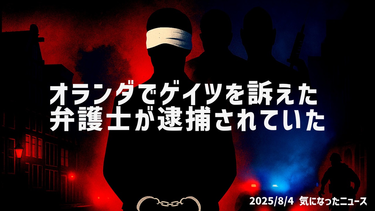 遅くなりました<br><br>オランダで起きた前代未聞の弁護士逮捕劇。<br>ビル・ゲイツやファイザーCEO、元WEFの幹部らを訴えた弁護士が、目隠しで連行され、証拠もないまま拘束され続けています。<br>この異常な対応に、ベルギー・ドイツ・デンマークなど近隣諸国が強く反応し、報道の自由度が高い北欧諸国も「ファシズムの兆候」として懸念を表明。<br>今、ヨーロッパの中で何が起きているのか?<br>そしてそれは、日本を含む私たちの自由や表現にも、どんな影響を及ぼすのか?<br><br>◆オランダでゲイツを訴えた弁護士が逮捕されていた<a href="https://www.thefocalpoints.com/p/lawyer-suing-gates-and-bourla-for" target="_blank" rel="noopener nofollow">https://www.thefocalpoints.com/p/lawyer-suing-gates-and-bourla-for</a><br><br>◆今回の台本<a href="https://keiichiro8140.hatenablog.com/entry/202508044442222" target="_blank" rel="noopener nofollow">https://keiichiro8140.hatenablog.com/entry/202508044442222</a><br><br>◆チャンネル登録よろしくお願いします<a href="https://youtube.com/@k16_888?si=1S8pLN1Tf9bGiJyV" target="_blank" rel="noopener nofollow">https://youtube.com/@k16_888?si=1S8pLN1Tf9bGiJyV</a><br><br>◆もしも(BAN)の時のためのマイリンク集<a href="https://lit.link/K16_888" target="_blank" rel="noopener nofollow">https://lit.link/K16_888</a><br><br>気になったニュース 2025/8/4<br><br><br />著作権、肖像権に配慮して作成しております。<br><br>◆気になったニュースの台本!?<br>メモ代わりに作った台本をそのままあげてます<br><a href="https://keiichiro8140.hatenablog.com/." target="_blank" rel="noopener nofollow">https://keiichiro8140.hatenablog.com/.</a><br><br><br>ここからはシリーズ紹介<br><br><br>◆ ワクチン解毒・デトックス<br><a href="https://x.gd/fZweg" target="_blank" rel="noopener nofollow">https://x.gd/fZweg</a><br><br>◆ウイリアム・マキス博士のがん治療(イベルメクチン・フェンベンダゾール等)<br><a href="https://x.gd/AtFYS" target="_blank" rel="noopener nofollow">https://x.gd/AtFYS</a><br><br>◆予防接種健康被害救済制度<br><a href="https://x.gd/0xK9x" target="_blank" rel="noopener nofollow">https://x.gd/0xK9x</a><br><br>◆気になったニュース #1501~<br><br>◆ 【ショートver】気になったニュース<br><a href="https://x.gd/7MxXC" target="_blank" rel="noopener nofollow">https://x.gd/7MxXC</a><br><br>◆ 気になったニュース #1001~<br><a href="https://x.gd/Lp8gv" target="_blank" rel="noopener nofollow">https://x.gd/Lp8gv</a><br><br>◆ 気になったニュース #501~<br><a href="https://x.gd/EmbS4" target="_blank" rel="noopener nofollow">https://x.gd/EmbS4</a><br><br>◆ 気になったニュース #1~#500<br><a href="https://x.gd/uPhNb" target="_blank" rel="noopener nofollow">https://x.gd/uPhNb</a><br><br>◆ X(旧Twitter)・テレグラムで気になった情報<br><a href="https://x.gd/YG6FT" target="_blank" rel="noopener nofollow">https://x.gd/YG6FT</a><br><br>◆ 日比谷5万人パレードデ⚪生放送アーカイブ動画<br><a href="https://x.gd/3CHJv" target="_blank" rel="noopener nofollow">https://x.gd/3CHJv</a><br><br>◆日比谷5万人パレード⚪モのマイリスト作ってみました<br><a href="https://nico.ms/mylist/76828848?ref=sp_other" target="_blank" rel="noopener nofollow">https://nico.ms/mylist/76828848?ref=sp_other</a><br><br>◆3.30 令和の百姓⚪⚪<br><a href="https://www.nicovideo.jp/series/511791?ref=garage_share_other" target="_blank" rel="noopener nofollow">https://www.nicovideo.jp/series/511791?ref=garage_share_other</a><br><br>◆ 及川幸久さんの【XNEWS】シリーズ<br><a href="https://x.gd/3k78K" target="_blank" rel="noopener nofollow">https://x.gd/3k78K</a><br><br>◆これまでの動画<a href="https://x.gd/sPXoJ" target="_blank" rel="noopener nofollow">https://x.gd/sPXoJ</a><br><br>◆もしも(BAN)の時のためのマイリンク集<a href="https://lit.link/K-16_News44" target="_blank" rel="noopener nofollow">https://lit.link/K-16_News44</a><br><br>