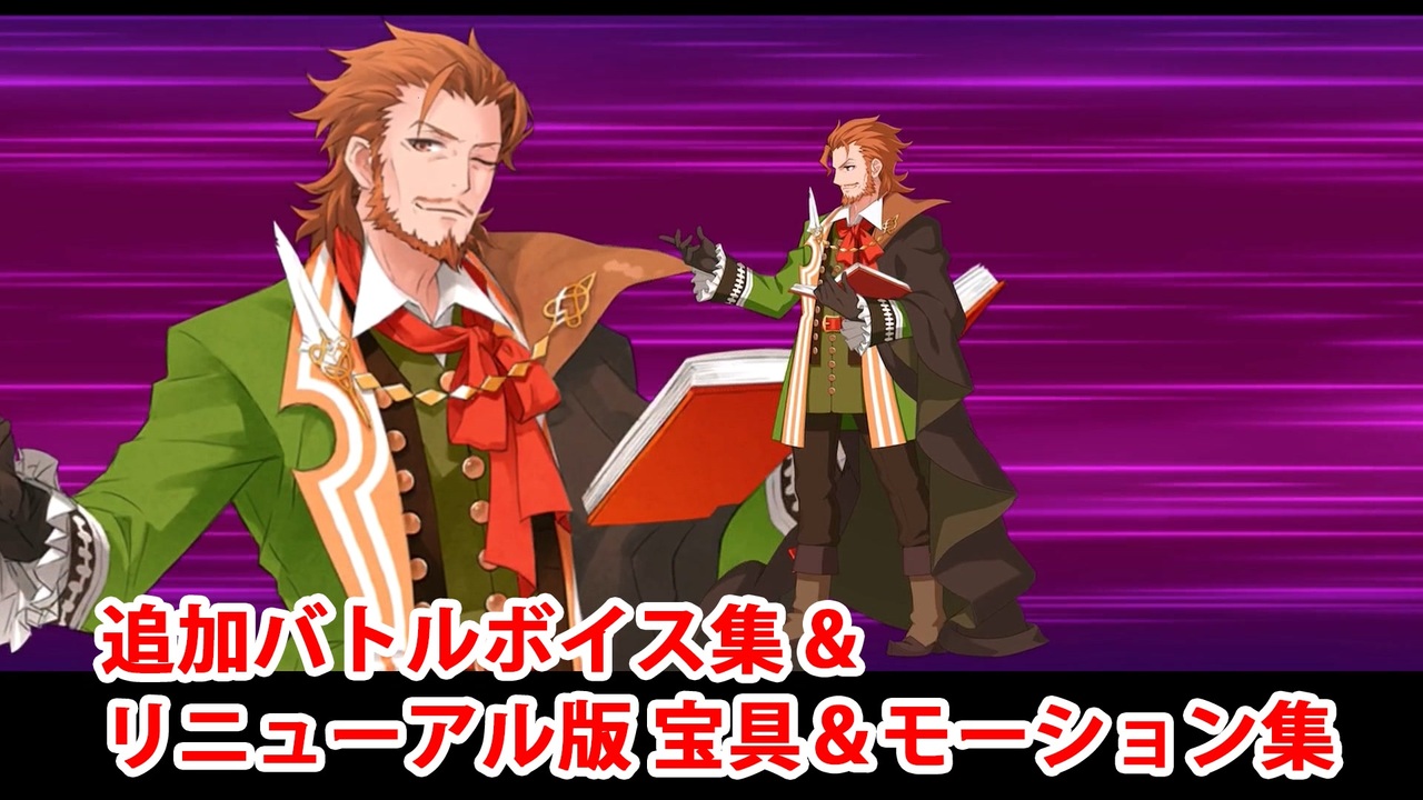 「Fate/Grand Order ~10th Anniversary~」の<br>モーションリニューアルに合わせて追加されたウィリアム・シェイクスピア(CV:稲田徹)のバトルボイスのまとめと<br>リニューアルされた全バトルモーション(攻撃、スキル、EXアタック、宝具)のまとめです。<br><br>※マイルームボイスはCBCのタイミングで追加されていたためか、今回の追加はありません。<br><br>宝具「開演の刻は来たれり、此処に万雷の喝采を(ファースト・フォリオ)」<br><br>【チャプター】<br><a href="#" class="seekTime" data-seekTime="0:00" onclick="seekNicoPlayer('#0:00'); return false;">#0:00</a> バトルキャラ表示<br><a href="#" class="seekTime" data-seekTime="0:31" onclick="seekNicoPlayer('#0:31'); return false;">#0:31</a> バトルボイス<br><a href="#" class="seekTime" data-seekTime="2:43" onclick="seekNicoPlayer('#2:43'); return false;">#2:43</a> リニューアル版モーション<br><br>YouTube版はこちら<br><a href="https://www.youtube.com/watch?v=oPkAuODOdRM" target="_blank" rel="noopener nofollow">https://www.youtube.com/watch?v=oPkAuODOdRM</a><br><br />投稿済ボイス集→<a href="https://www.nicovideo.jp/mylist/57873980" target="_blank" rel="noopener">mylist/57873980</a>、<a href="https://www.nicovideo.jp/mylist/68037946" target="_blank" rel="noopener">mylist/68037946</a>、<a href="https://www.nicovideo.jp/mylist/76708013" target="_blank" rel="noopener">mylist/76708013</a>