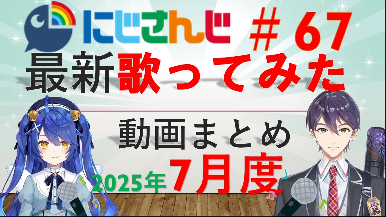 <span style="color: #00ff00;">◆</span>期間:2025年7月1日~7月31日<br><span style="color: #00ff00;">◆</span>対象:にじさんじライバーによる歌ってみた動画<br><span style="font-size: 10px;">(にじさんじのみ対象。JP・元ID・元KR・EN)</span><br><span style="color: #00ff00;">◆</span><span style="color: #262626;">参考サイト:(</span><span style="color: #262626;"><strong>↓元動画はこのページからご参照ください↓</strong></span><span style="color: #262626;">)</span><br>VMusic Ch. 様<br><a href="https://music.vtuber-ch.com/?gname=にじさんじALL" target="_blank" rel="noopener nofollow">https://music.vtuber-ch.com/?gname=にじさんじALL</a><br>にじさんじ非公式Wiki 様<br><a href="https://wikiwiki.jp/nijisanji/歌唱まとめ" target="_blank" rel="noopener nofollow">https://wikiwiki.jp/nijisanji/歌唱まとめ</a><br><br>前回(6月)の歌みたまとめ:<a href="https://www.nicovideo.jp/watch/sm45144558" class="watch">sm45144558</a><br>年間歌ってみたまとめ:<a href="https://www.nicovideo.jp/watch/sm44544012" class="watch">sm44544012</a><br><br>プレイリストは上記非公式Wiki内のプレイリストをご活用ください。<br>気になる歌動画を見つけたらぜひ、元動画をご覧ください!!<br><br>よく確認はしましたが、抜けがありましたらコメントをお願いいたします。<br><br>お詫び<br>D/N/A - ましろ爻, x0o0x_<br><a href="https://www.youtube.com/watch?v=8AGKgUMWvGQ" target="_blank" rel="noopener nofollow">https://www.youtube.com/watch?v=8AGKgUMWvGQ</a><br>以上の動画が掲載から漏れていました。<br>来月度の動画で改めてご紹介させていだたきます。<br>大変失礼いたしました。