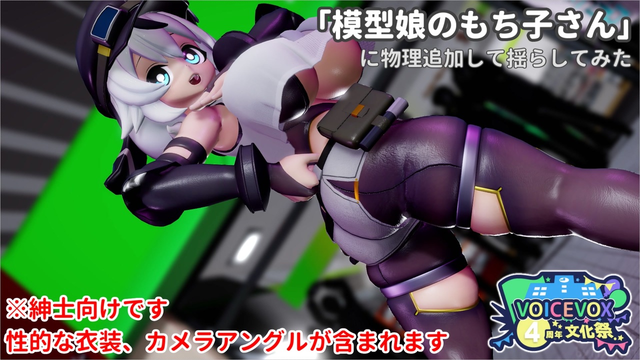 あまりにもちもちな身体だったので物理を盛り盛りにして揺らさざるを得なかった。<br><br>物理:胸をRGBA式に置換、尻・太もも・腹に追加、乳カーテンを揺れるように<br>テクスチャ:胴体中央部分を素肌に、インナー全体を透け透けな感じに改造<br><br>※文化祭の空気的にVOICEVOX音声すら使ってない紳士動画出すのは<br> どうなのと思わなくもありませんでしたが、<br> 「ボイボ寮キャラクターがメイン」ではあるしギリセーフかなって…<br> 元々文化祭あるの知らずに作ってたんですよ…動画できたーってタイミングで<br> 文化祭やってるの知ったんですけど、これは天が出せって言ってると思うじゃん。<br><br>使用したモデル:【公式モデル】模型娘のもち子さん_Ver1.01(もちぞら模型店)<br><a href="https://3d.nicovideo.jp/works/td95102" target="_blank" rel="noopener nofollow">https://3d.nicovideo.jp/works/td95102</a><br><br>使用したその他のモデル・ステージ・音源・ツールやエフェクトは動画内およびコンテンツツリーに記載します。<br>もちぞら模型店様、ならびに各製作者様、関係者様の方々に感謝致します。<br><br>動画のご視聴ありがとうございます<br>励みになりますのでぜひコメント、いいねをお願いします!