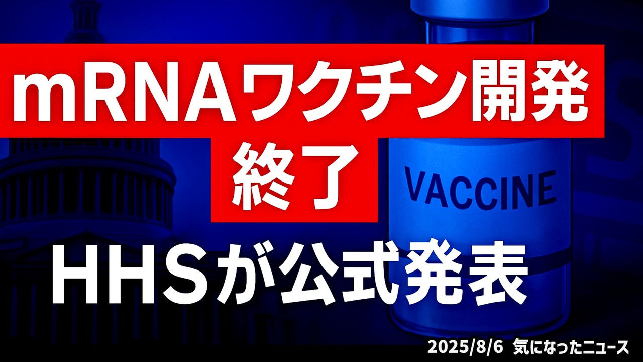 【朗報】◆HHSによる『mRNAワクチン開発の終了発表』<br>①X(旧Twitter)<a href="https://x.com/Trilliana_x/status/1952945710082736530?t=qgAb1IomWGYr7_qu9kz4qQ&s=19" target="_blank" rel="noopener nofollow">https://x.com/Trilliana_x/status/1952945710082736530?t=qgAb1IomWGYr7_qu9kz4qQ&s=19</a><br><br>②記事<a href="https://news.yahoo.co.jp/articles/73b8393c14a0750caadec6d4df2a806dbbc624d5" target="_blank" rel="noopener nofollow">https://news.yahoo.co.jp/articles/73b8393c14a0750caadec6d4df2a806dbbc624d5</a><br><br>③文章<a href="https://x.com/5rHxIhQGQnnRSOe/status/1953020201454493739?t=Zm_uL-VE6dJlVwvB7hNHkQ&s=19" target="_blank" rel="noopener nofollow">https://x.com/5rHxIhQGQnnRSOe/status/1953020201454493739?t=Zm_uL-VE6dJlVwvB7hNHkQ&s=19</a><br><br>✅ あらすじ<br><br>米保健福祉省(HHS)は、mRNAワクチン開発事業を正式に終了すると発表。COVID-19パンデミック中に多額の投資が行われたmRNA技術だが、HHSは「上気道感染症に対する効果が確認できなかった」として22件・総額5億ドル規模の事業打ち切りを決定。今後は安全性と実効性の高い他のワクチンプラットフォームに重点を移すという。米当局による歴史的転換点を伝える公式発表である。<br><br>◆今回の台本<a href="https://keiichiro8140.hatenablog.com/entry/20250806666888999" target="_blank" rel="noopener nofollow">https://keiichiro8140.hatenablog.com/entry/20250806666888999</a><br><br>◆チャンネル登録よろしくお願いします<a href="https://youtube.com/@k16_888?si=1S8pLN1Tf9bGiJyV" target="_blank" rel="noopener nofollow">https://youtube.com/@k16_888?si=1S8pLN1Tf9bGiJyV</a><br><br>◆もしも(BAN)の時のためのマイリンク集<a href="https://lit.link/K16_888" target="_blank" rel="noopener nofollow">https://lit.link/K16_888</a><br><br>気になったニュース 2025/8/6<br><br><br />著作権、肖像権に配慮して作成しております。<br><br>◆気になったニュースの台本!?<br>メモ代わりに作った台本をそのままあげてます<br><a href="https://keiichiro8140.hatenablog.com/." target="_blank" rel="noopener nofollow">https://keiichiro8140.hatenablog.com/.</a><br><br><br>ここからはシリーズ紹介<br><br><br>◆ ワクチン解毒・デトックス<br><a href="https://x.gd/fZweg" target="_blank" rel="noopener nofollow">https://x.gd/fZweg</a><br><br>◆ウイリアム・マキス博士のがん治療(イベルメクチン・フェンベンダゾール等)<br><a href="https://x.gd/AtFYS" target="_blank" rel="noopener nofollow">https://x.gd/AtFYS</a><br><br>◆予防接種健康被害救済制度<br><a href="https://x.gd/0xK9x" target="_blank" rel="noopener nofollow">https://x.gd/0xK9x</a><br><br>◆気になったニュース #1501~<br><br>◆ 【ショートver】気になったニュース<br><a href="https://x.gd/7MxXC" target="_blank" rel="noopener nofollow">https://x.gd/7MxXC</a><br><br>◆ 気になったニュース #1001~<br><a href="https://x.gd/Lp8gv" target="_blank" rel="noopener nofollow">https://x.gd/Lp8gv</a><br><br>◆ 気になったニュース #501~<br><a href="https://x.gd/EmbS4" target="_blank" rel="noopener nofollow">https://x.gd/EmbS4</a><br><br>◆ 気になったニュース #1~#500<br><a href="https://x.gd/uPhNb" target="_blank" rel="noopener nofollow">https://x.gd/uPhNb</a><br><br>◆ X(旧Twitter)・テレグラムで気になった情報<br><a href="https://x.gd/YG6FT" target="_blank" rel="noopener nofollow">https://x.gd/YG6FT</a><br><br>◆ 日比谷5万人パレードデ⚪生放送アーカイブ動画<br><a href="https://x.gd/3CHJv" target="_blank" rel="noopener nofollow">https://x.gd/3CHJv</a><br><br>◆日比谷5万人パレード⚪モのマイリスト作ってみました<br><a href="https://nico.ms/mylist/76828848?ref=sp_other" target="_blank" rel="noopener nofollow">https://nico.ms/mylist/76828848?ref=sp_other</a><br><br>◆3.30 令和の百姓⚪⚪<br><a href="https://www.nicovideo.jp/series/511791?ref=garage_share_other" target="_blank" rel="noopener nofollow">https://www.nicovideo.jp/series/511791?ref=garage_share_other</a><br><br>◆ 及川幸久さんの【XNEWS】シリーズ<br><a href="https://x.gd/3k78K" target="_blank" rel="noopener nofollow">https://x.gd/3k78K</a><br><br>◆これまでの動画<a href="https://x.gd/sPXoJ" target="_blank" rel="noopener nofollow">https://x.gd/sPXoJ</a><br><br>◆もしも(BAN)の時のためのマイリンク集<a href="https://lit.link/K-16_News44" target="_blank" rel="noopener nofollow">https://lit.link/K-16_News44</a><br><br>