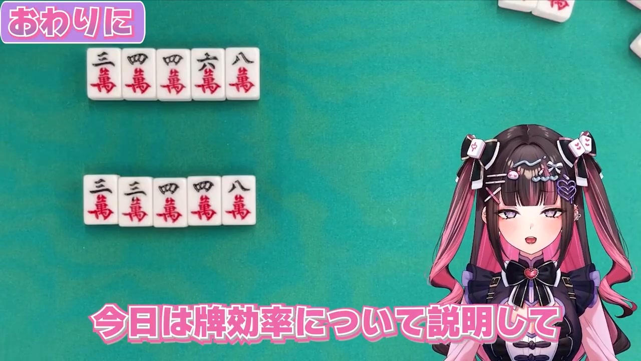こんあむち~!<br>麻雀大好き!新人Vtuberの新弐あむだよっ!!<br>みんな、あむのお店に遊びに来てくれてありがとうっ(ᐡ⸝⸝∩༝∩⸝⸝ᐡ).。o(♡)<br><br>今日は牌効率について解説しました~<br><br>゜+.――゜+.――゜+.――゜+.――゜+<br><br>【初めての人はこちら】<br>自己紹介動画だよ✨<br><a href="https://youtu.be/KDBRygK4VLs" target="_blank" rel="noopener nofollow">https://youtu.be/KDBRygK4VLs</a><br><br>【プロフィール】<br>昼はサイエンティスト。夜は人気コンカフェ嬢!<br>「世界中のみんなに愛された!」という偏った想いで「特性ドリンク(惚れ薬)」を開発中✨<br>麻雀で負かした相手に、特性ドリンクを飲ませている。<br>惚れさせた相手を「もるもっつ」と呼び、溺愛するマッドサイエンティスト💗<br><br>【新弐あむ】<br>デビュー:10/11<br>誕生日:04/06<br>ファンマ:🩹🀄🧪<br>ファンネーム:もるもっつ<br>゜+.――゜+.――゜+.――゜+.――゜+<br><br>いろんなご案内♪<br>【X (旧Twitter)】配信の予告や活動の裏話を投稿しているよ<br> <a href="https://x.com/Arani_Amu" target="_blank" rel="noopener nofollow">https://x.com/Arani_Amu</a><br><br>【lit.link】ナイショの自己紹介だよ(*ノωノ)<br><a href="https://lit.link/AraniAmu" target="_blank" rel="noopener nofollow">https://lit.link/AraniAmu</a><br><br>【公式オンラインストア】あむの限定グッズを作ってるよ♡<br><a href="https://www.araniamu.com/" target="_blank" rel="noopener nofollow">https://www.araniamu.com/</a><br><br>゜+.――゜+.――゜+.――゜+.――゜+<br><br>【初心者向けの麻雀レクチャー動画まとめました】<br>▶プロ雀士児嶋と学ぶ、楽しい麻雀講座!初心者でもすぐ打てるよ🀄️<br><a href="https://youtu.be/PwIGq1dYVek" target="_blank" rel="noopener nofollow">https://youtu.be/PwIGq1dYVek</a><br><br>▶【麻雀初心者向けルール講座】①麻雀ってどんなゲーム?<br><a href="https://youtu.be/KxLyTmhg2RI" target="_blank" rel="noopener nofollow">https://youtu.be/KxLyTmhg2RI</a><br><br>▶【超初心者向け】宇宙一分かりやすく麻雀のルールを解説する<br><a href="https://youtu.be/twyW46CZ4Sc" target="_blank" rel="noopener nofollow">https://youtu.be/twyW46CZ4Sc</a><br><br>▶【雀荘デビュー向け】麻雀の始め方 席決め、起家決め、配牌の取り方<br><a href="https://youtu.be/o7msgU0rI94" target="_blank" rel="noopener nofollow">https://youtu.be/o7msgU0rI94</a><br><br>▶【初心者必見】この動画を見れば麻雀が打てるようになる上に結構勝てちゃいます!!!!!!?【歌衣メイカ】【雀魂】<br><a href="https://youtu.be/xUJloXpVoJs" target="_blank" rel="noopener nofollow">https://youtu.be/xUJloXpVoJs</a><br><br>▶【粗品流】麻雀初心者講座コレさえ見れば打てます!!【霜降り明星】<br><a href="https://youtu.be/bPrZxByVzF8" target="_blank" rel="noopener nofollow">https://youtu.be/bPrZxByVzF8</a><br><br>#あらにあむ #アラニアム<br>