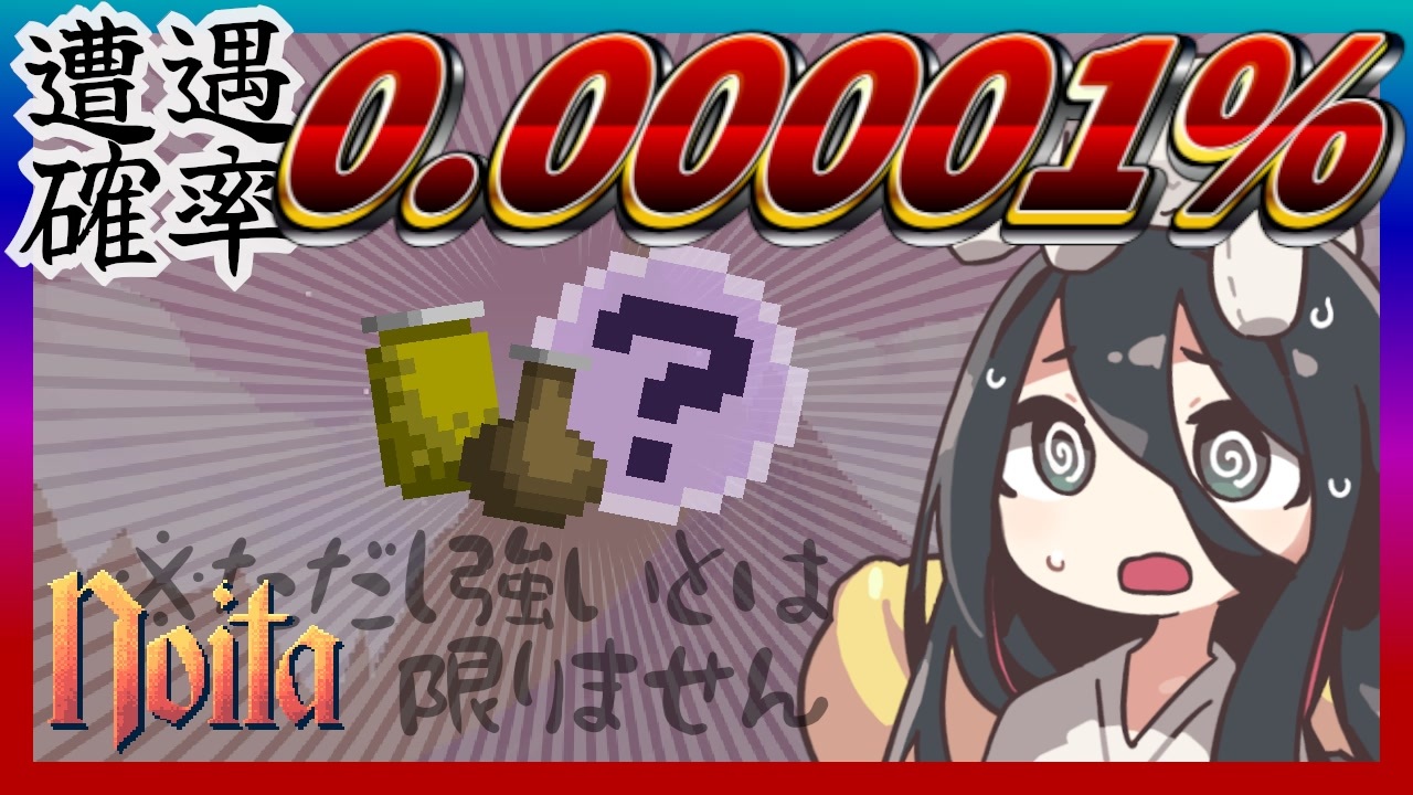 ※一部にnoitaのネタバレを含む…かも。 <br>こんなご時世だ。<br>1000回に1回しか拾えないアイテムだの、4枚揃ってやっと成立するコンボだの何だの、強そうなモンはあらかた試したけど、2層の山で売ってる80円のチェーンソーがいちばんつえぇ。<br>noitaってのは一体何なんだろうな… <br><br>noita初心者向けの攻略情報兼反面教師動画…?<br>次→<a href="https://www.nicovideo.jp/watch/sm45291472" class="watch">sm45291472</a><br><br>動画内で紹介された動画<br><a href="https://www.nicovideo.jp/watch/sm45128540" class="watch">sm45128540</a><br><br>youtubeにも動画を上げてます。<br><a href="https://www.youtube.com/@ki2yenjo/videos" target="_blank" rel="noopener nofollow">https://www.youtube.com/@ki2yenjo/videos</a><br><br>立ち絵はこちらを使用させていただいています。ありがとうございます!<br><a href="https://seiga.nicovideo.jp/seiga/im11232921" target="_blank" rel="noopener nofollow">https://seiga.nicovideo.jp/seiga/im11232921</a><br>VOICEVOX:中国うさぎ<br>BGM:騒音のない世界<br><a href="https://noiselessworld.net/" target="_blank" rel="noopener nofollow">https://noiselessworld.net/</a><br>BGMer<br><a href="https://bgmer.net/" target="_blank" rel="noopener nofollow">https://bgmer.net/</a><br><br>