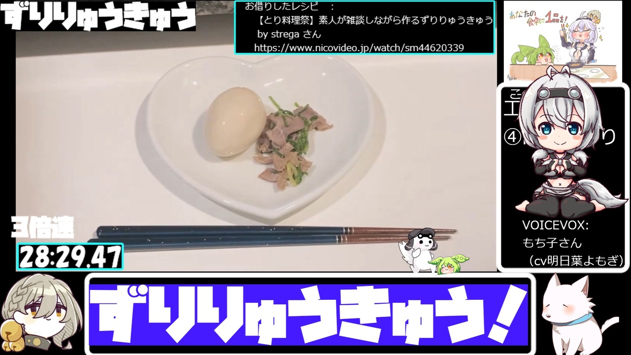 料理初心者がはじめて作る料理にチャレンジします!<br><br>参考にしたレシピはこちら<br> 【とり料理祭】素人が雑談しながら作るずりりゅうきゅう by strega さん<br> <a href="https://www.nicovideo.jp/watch/sm44620339" target="_blank" rel="noopener nofollow">https://www.nicovideo.jp/watch/sm44620339</a><br><br>本動画は以下投稿祭に参加しています。<br> 【企画告知】とり料理祭2025夏 お題枠設定します!【とり料理祭2025夏】 by ちきんすてーき<br> <a href="https://www.nicovideo.jp/watch/sm44655921" target="_blank" rel="noopener nofollow">https://www.nicovideo.jp/watch/sm44655921</a><br /><br>編集に使用させていただいているものは、プロフィールみてね!<br><a href="https://www.nicovideo.jp/user/311366" target="_blank" rel="noopener nofollow">https://www.nicovideo.jp/user/311366</a><br><br>読み上げ:VOICEVOX もち子(cv明日葉よもぎ)、ずんだもん、四国めたん、青山龍星、WhiteCUL、伊織弓鶴、COEIROINK:猫米茶<br><br><strong>過去の動画にコメント、いいね!、ギフト、広告、フォロー、マイリストありがとうございました!</strong><br><br>とり料理祭ありがとうございました!<br>2023参加作品はこちら ⇒ <a href="https://www.nicovideo.jp/mylist/75430531" target="_blank" rel="noopener nofollow">https://www.nicovideo.jp/mylist/75430531</a><br>2024冬参加作品はこちら ⇒ <a href="https://www.nicovideo.jp/mylist/75862737" target="_blank" rel="noopener nofollow">https://www.nicovideo.jp/mylist/75862737</a><br>2024夏参加作品はこちら ⇒ <a href="https://www.nicovideo.jp/mylist/76572716" target="_blank" rel="noopener nofollow">https://www.nicovideo.jp/mylist/76572716</a><br>2025冬参加作品はこちら ⇒ <a href="https://www.nicovideo.jp/mylist/77171241" target="_blank" rel="noopener nofollow">https://www.nicovideo.jp/mylist/77171241</a><br>2025夏参加作品はこちら ⇒ <a href="https://www.nicovideo.jp/mylist/77600849" target="_blank" rel="noopener nofollow">https://www.nicovideo.jp/mylist/77600849</a><br><br>このその日ごとになんか出す定食屋か駄菓子屋のごとき動画を継続して投稿するために<br>スポンサーをひっそり募集しております、あなたも一口いかが?<br><a href="https://creator-support.nicovideo.jp/registration/311366" target="_blank" rel="noopener nofollow">https://creator-support.nicovideo.jp/registration/311366</a>