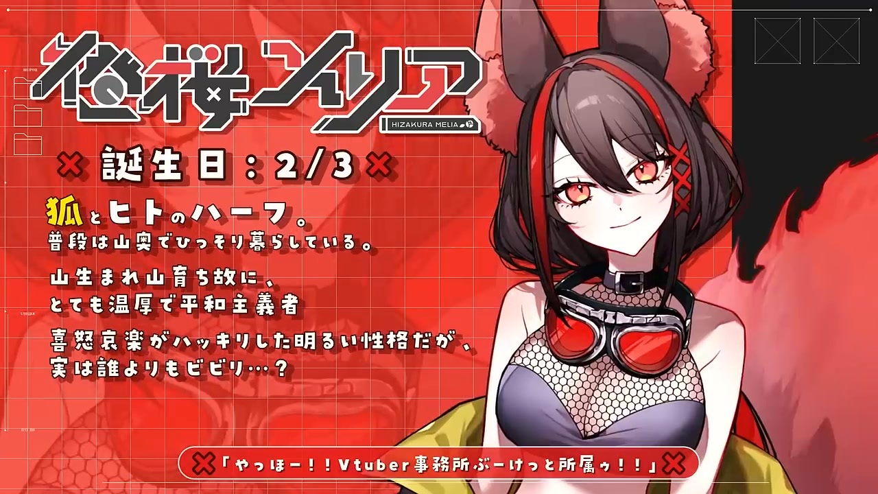 やっほー!!<br><br>12/7(土) 20:00- 初配信予定🐾<br><br>Vtuber事務所『Vquet』所属、桜椿担当🌸🌹<br>狐とヒトのハーフ、燈桜メリアやーッ!!!<br><br>YouTubeのチャンネル登録して待機 rdy<br><a href="https://www.youtube.com/@HizakuraMelia" target="_blank" rel="noopener nofollow">https://www.youtube.com/@HizakuraMelia</a><br><br>━━━━━━━━━━━━━━━━━━━━━━━━<br><br>◆燈桜メリア(HizakuraMelia)🌹🐾<br><a href="https://www.youtube.com/@HizakuraMelia" target="_blank" rel="noopener nofollow">https://www.youtube.com/@HizakuraMelia</a><br><br>・X<br><a href="https://x.com/melia_hizakura" target="_blank" rel="noopener nofollow">https://x.com/melia_hizakura</a><br><br>・ショップリンク<br><a href="https://vquet.jp/collections/all" target="_blank" rel="noopener nofollow">https://vquet.jp/collections/all</a><br><br>・Vquet公式サイト<br><a href="https://vquet.jp/" target="_blank" rel="noopener nofollow">https://vquet.jp/</a><br><br>・Twitch<br><a href="https://www.twitch.tv/hizakuramelia" target="_blank" rel="noopener nofollow">https://www.twitch.tv/hizakuramelia</a><br><br><br>━━━━━━━━━━━━━━━━━━━━━━━━<br><br>◆BIG LOVE<br><br>ずっと大好きママ様:さくしゃ2 様<br>X:<a href="https://twitter.com/sakusya2honda" target="_blank" rel="noopener nofollow">https://twitter.com/sakusya2honda</a><br><br>筋肉:Live2D Creative Studio 様<br>X:<a href="https://twitter.com/live2dcs" target="_blank" rel="noopener nofollow">https://twitter.com/live2dcs</a><br><br>キービジュアル:こもり 様<br>X:<a href="https://twitter.com/comori22" target="_blank" rel="noopener nofollow">https://twitter.com/comori22</a><br><br>ロゴ制作:コマチャン! 様<br>X:<a href="https://twitter.com/Kouma_Koma" target="_blank" rel="noopener nofollow">https://twitter.com/Kouma_Koma</a><br><br>動画制作:みくに(392) 様<br>X:<a href="https://twitter.com/mikuni392jp" target="_blank" rel="noopener nofollow">https://twitter.com/mikuni392jp</a><br><br><br>━━━━━━━━━━━━━━━━━━━━━━━━<br>#新人vtuber #vtuber #ティザーpv #燈桜メリア #ひざくらめりあ #ヒザクラメリア<br>