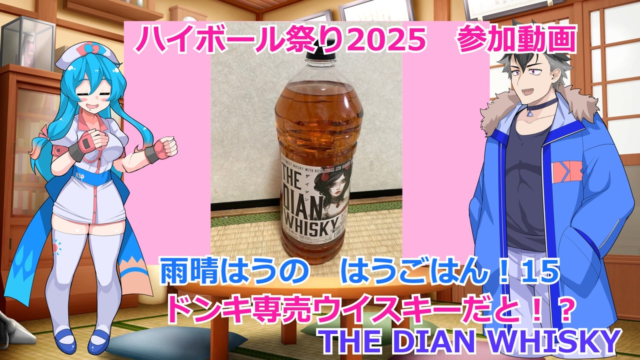 お久しぶりです。少し時間が空いてしまいましたが、またまた投稿します!<br><br>はうごはん、15本目は、蛸責屋烏賊狗斎様主催のハイボール祭り夏の陣2025参加動画です。<br><br>ドンキホーテ専売で、4リットルで3,000円を割ってくる低価格。<br>これは危険物なのか、それともお買い得品なのか。ハイボールにもしながらレビューします!<br><br>いいねボタンを押すと、今回紹介したもの以外でドンキで見つけたおススメのお酒が出てきます。<br><br>シリーズページはこちら→<a href="https://www.nicovideo.jp/user/10150506/series/492966" target="_blank" rel="noopener nofollow">https://www.nicovideo.jp/user/10150506/series/492966</a><br><br>【使用した素材】(※敬称略)<br>(合成音声)<br>VOICEVOX/雨晴はう<br>VOICEVOX/青山龍星<br><a href="https://voicevox.hiroshiba.jp/" target="_blank" rel="noopener nofollow">https://voicevox.hiroshiba.jp/</a><br><br>(立ち絵)<br>moiky / 雨晴はう立ち絵素材 <br><a href="https://seiga.nicovideo.jp/seiga/im10898404" target="_blank" rel="noopener">im10898404</a><br>moiky / 青山龍星立ち絵素材 <br><a href="https://seiga.nicovideo.jp/seiga/im10917242" target="_blank" rel="noopener">im10917242</a><br><br>(楽曲)<br>甘茶の音楽工房 /「ひよこのかけっこ」「ミスト」<br><a href="https://amachamusic.chagasi.com/" target="_blank" rel="noopener nofollow">https://amachamusic.chagasi.com/</a><br><br>(背景)<br>みんちりえ / 「昭和レトロな茶の間(夜・照明ON)<br><a href="https://min-chi.material.jp/" target="_blank" rel="noopener nofollow">https://min-chi.material.jp/</a><br><br>(セリフ枠)<br>フリー素材処くらげや<br><a href="https://commons.nicovideo.jp/works/nc369839" target="_blank" rel="noopener">nc369839</a><br><br>(各種効果)<br>たつろー・Tスタ<br><a href="https://commons.nicovideo.jp/works/nc391598" target="_blank" rel="noopener">nc391598</a><br>雫ちゃん<br><a href="https://commons.nicovideo.jp/works/nc361451" target="_blank" rel="noopener">nc361451</a><br>効果音ラボ
