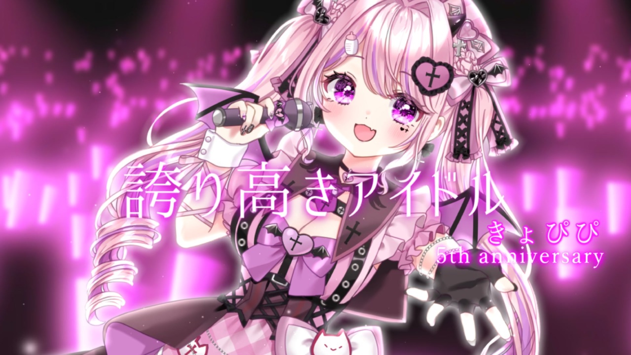 <span style="color: #d5a6bd; font-size: 18px;">❥「恩返しできる日まで待ってて──。」</span><br><span style="color: #d5a6bd;">8/11きょぴぴ活動5周年♡<br>みんなに支えられて5周年を迎える事ができました。<br>きょぴぴと関わってくれた方、誰か一人でも欠けていたら今のきょぴぴは存在してないです。<br>みんな一人一人が大切で大好きな宝物のような存在です。<br>いつも支えてくれて本当にありがとうございます♡<br>みんながいるからこうやって、楽しく活動出来ています( ; ; )♡<br>これからもずっと末永く、きょぴぴの傍に居てください。<br><br>5周年は、リスナーさん、お友達、クリエイター様、<br>きょぴぴと関わってくださった全ての方に届けたいと思いを込め歌わせて頂きました。<br>たぜひ最後まで楽しんでいってください♡<br><br><br>▋Credit<br> ̄ ̄ ̄ ̄ ̄ ̄ ̄ ̄ ̄ ̄ ̄ ̄ ̄ ̄ ̄ ̄ ̄ ̄ ̄ ̄<br>💗 本家様:誇り高きアイドル / HoneyWorks様<br><a href="https://www.nicovideo.jp/watch/sm38451239" class="watch">sm38451239</a> key❥±0<br><br>💗Vocal:きょぴぴ <a href="https://www.nicovideo.jp/mylist/68995635" target="_blank" rel="noopener">mylist/68995635</a><br><a href="https://x.com/kyopi_cos" target="_blank" rel="noopener nofollow">https://x.com/kyopi_cos</a><br><a href="https://youtube.com/@kyopipi_channel" target="_blank" rel="noopener nofollow">https://youtube.com/@kyopipi_channel</a><br><br>💗 Movie:ヨザキリ様 <a href="https://x.com/yozaki_kome" target="_blank" rel="noopener nofollow">https://x.com/yozaki_kome</a><br><br>💗 MIX:sugi様 <a href="https://x.com/CMR_inc_jp" target="_blank" rel="noopener nofollow">https://x.com/CMR_inc_jp</a> <br><br>💗 Illust:あでりーぬ様 <a href="https://x.com/ade_pen_25" target="_blank" rel="noopener nofollow">https://x.com/ade_pen_25</a><br><br>💗 ペンライト背景動画素材:さけみりん様<br><a href="https://twitter.com/sakemirin_AE" target="_blank" rel="noopener nofollow">https://twitter.com/sakemirin_AE</a><br><br></span><br><br><br>