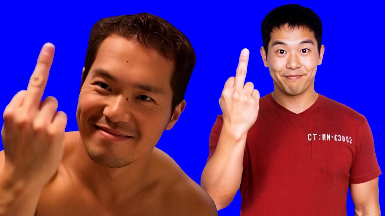 中指を立てるホモ BB