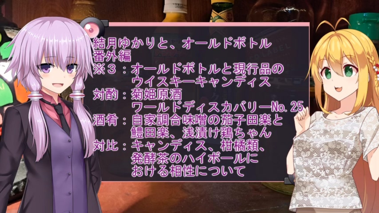 (8/22追記)「間に合えば」とは8月31日夜です。<br>10日のハイボール祭には何とか間に合いました。CMした作品・投稿祭は次の通りです。<br>・ほろ酔いゆかり<br><a href="https://seiga.nicovideo.jp/seiga/im11487638" target="_blank" rel="noopener nofollow">https://seiga.nicovideo.jp/seiga/im11487638</a><br>・【8月1日~8月10日】ハイボール祭り夏の陣2025開催!【投稿祭告知】<br><a href="https://www.nicovideo.jp/watch/sm45043250" target="_blank" rel="noopener nofollow">https://www.nicovideo.jp/watch/sm45043250</a><br>・【正式告知】一か月前だよ!「ソフトウェアトーク発酵食品祭2025」【2025年8月2日~11日】<br><a href="https://www.nicovideo.jp/watch/sm45141112" target="_blank" rel="noopener nofollow">https://www.nicovideo.jp/watch/sm45141112</a><br>・【企画告知】とり料理祭2025夏 開催します!【とり料理祭2025夏】<br><a href="https://www.nicovideo.jp/watch/sm44655921" target="_blank" rel="noopener nofollow">https://www.nicovideo.jp/watch/sm44655921</a><br>・VRアカデミア<br><a href="https://www.nicovideo.jp/tag/VR%E3%82%A2%E3%82%AB%E3%83%87%E3%83%9F%E3%82%A2?rf=nvpc&rp=watch&ra=tags" target="_blank" rel="noopener nofollow">https://www.nicovideo.jp/tag/VR%E3%82%A2%E3%82%AB%E3%83%87%E3%83%9F%E3%82%A2?rf=nvpc&rp=watch&ra=tags</a><br>・タケモトカツヒコ 著作一覧<br><a href="https://www.whiskylink.jp/?cat=10" target="_blank" rel="noopener nofollow">https://www.whiskylink.jp/?cat=10</a><br>動画で紹介した論文<br><a href="https://www.whiskylink.jp/?p=25438" target="_blank" rel="noopener nofollow">https://www.whiskylink.jp/?p=25438</a><br>上記の翻訳前の元の論文<br>Thomas J. Kelly, Christine O’Connor, Kieran N. Kilcawley(2023)<br>”Sources of Volatile Aromatic Congeners in Whiskey”<br><a href="https://www.mdpi.com/2306-5710/9/3/64" target="_blank" rel="noopener nofollow">https://www.mdpi.com/2306-5710/9/3/64</a><br>主にScienceDirectやElsevier、Springerを検索していたので、此方は抑えられておらずまだ文献が増えそうですが、動画にする時にはなるべく平易にまとめます。<br><br><a target="_blank" href="https://qa.nicovideo.jp/faq/show/19424?site_domain=default" style="font-size: 13px;color: #657586; text-decoration: underline; line-height: 1.4">この動画は投稿者によって修正されました</a>