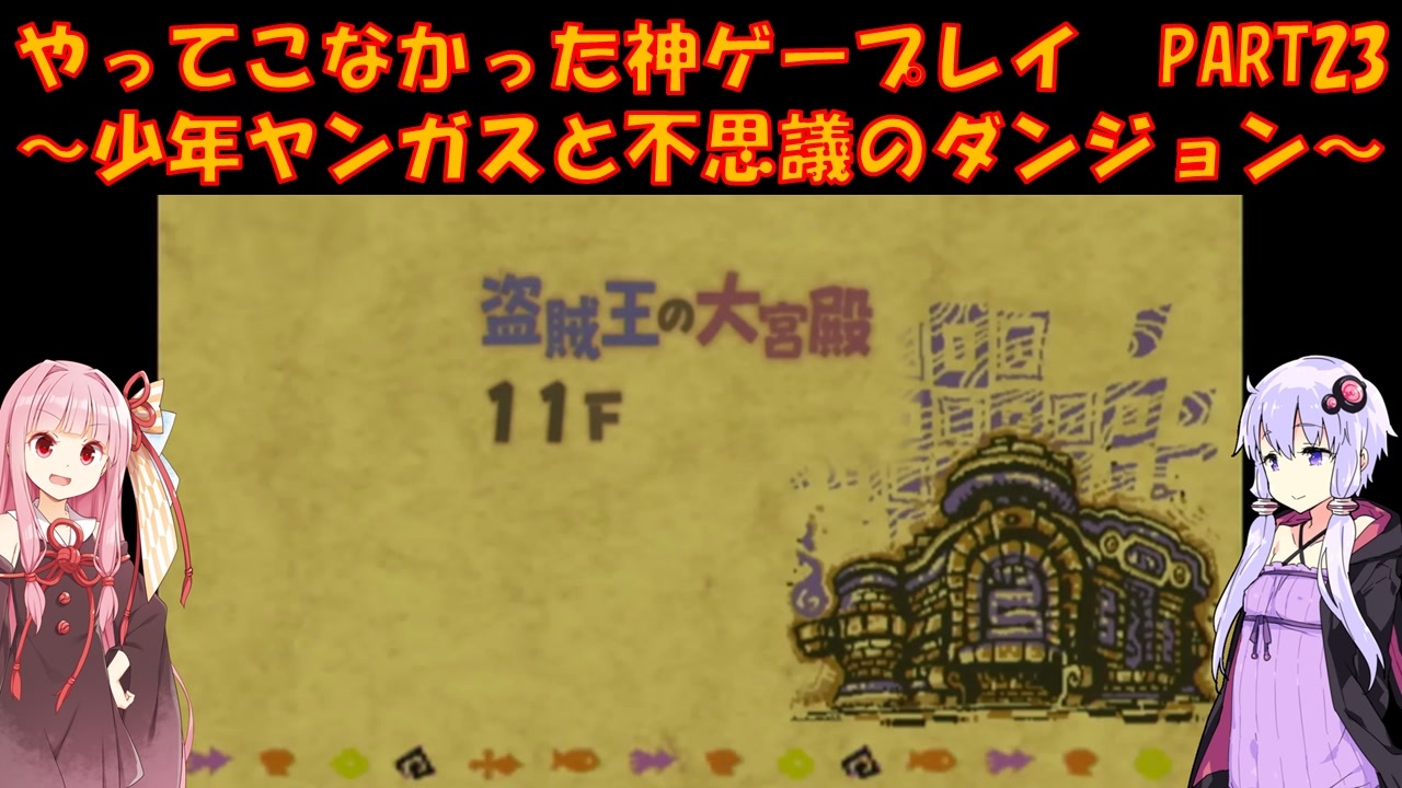 PS2 少年ヤンガスと不思議のダンジョンをプレイ<br>ゆかりさんはメジャーじゃないゲームをやる俺カッケー族だったのでドラクエをやったことがありませんでした(DSのⅤ以外)<br><br>茜:盗賊王の大宮殿の11階からスタート<br>ゆ:この辺だとまだまだ未鑑定のものが多いですね<br><br>PART1:<a href="https://www.nicovideo.jp/watch/sm45104666" target="_blank" rel="noopener nofollow">https://www.nicovideo.jp/watch/sm45104666</a><br><br>各DQシリーズ第1回リンク<br>DQ1:<a href="https://www.nicovideo.jp/watch/sm41819145" target="_blank" rel="noopener nofollow">https://www.nicovideo.jp/watch/sm41819145</a><br>DQ2:<a href="https://www.nicovideo.jp/watch/sm41895278" target="_blank" rel="noopener nofollow">https://www.nicovideo.jp/watch/sm41895278</a><br>DQ3:<a href="https://www.nicovideo.jp/watch/sm42034398" target="_blank" rel="noopener nofollow">https://www.nicovideo.jp/watch/sm42034398</a><br>DQ4:<a href="https://www.nicovideo.jp/watch/sm42520974" target="_blank" rel="noopener nofollow">https://www.nicovideo.jp/watch/sm42520974</a><br>DQ5:<a href="https://www.nicovideo.jp/watch/sm42848575" target="_blank" rel="noopener nofollow">https://www.nicovideo.jp/watch/sm42848575</a><br>DQ6:<a href="https://www.nicovideo.jp/watch/sm43080264" target="_blank" rel="noopener nofollow">https://www.nicovideo.jp/watch/sm43080264</a><br>DQ7:<a href="https://www.nicovideo.jp/watch/sm43851863" target="_blank" rel="noopener nofollow">https://www.nicovideo.jp/watch/sm43851863</a><br>DQ8:<a href="https://www.nicovideo.jp/watch/sm44676588" target="_blank" rel="noopener nofollow">https://www.nicovideo.jp/watch/sm44676588</a><br>DQM1:<a href="https://www.nicovideo.jp/watch/sm43525709" target="_blank" rel="noopener nofollow">https://www.nicovideo.jp/watch/sm43525709</a><br>DQMCH:<a href="https://www.nicovideo.jp/watch/sm44443421" target="_blank" rel="noopener nofollow">https://www.nicovideo.jp/watch/sm44443421</a><br><br>動画内で使用させていただいた素材<br>【イラスト】<br>結月ゆかり→ペテン師様:<a href="https://seiga.nicovideo.jp/seiga/im5494168" target="_blank" rel="noopener nofollow">https://seiga.nicovideo.jp/seiga/im5494168</a><br>琴葉茜→ユメのオワリ様:<a href="https://seiga.nicovideo.jp/seiga/im10706241" target="_blank" rel="noopener nofollow">https://seiga.nicovideo.jp/seiga/im10706241</a><br><br>【音声】<br>A.I.Voice:琴葉茜<br><a href="https://aivoice.jp/product/kotonoha/" target="_blank" rel="noopener nofollow">https://aivoice.jp/product/kotonoha/</a><br><br>A.I.Voice:結月ゆかり<br><a href="https://aivoice.jp/product/yukari/" target="_blank" rel="noopener nofollow">https://aivoice.jp/product/yukari/</a><br><br>【その他素材】<br><br>この動画で利用している株式会社スクウェア・エニックスを代表とする共同著作者が権利を所有する著作物及びスギヤマ工房有限会社が権利を所有する楽曲の転載・配布は禁止いたします。<br>© 2006 ARMOR PROJECT/BIRD STUDIO/SQUARE ENIX All Rights Reserved.<br>© SUGIYAMA KOBO