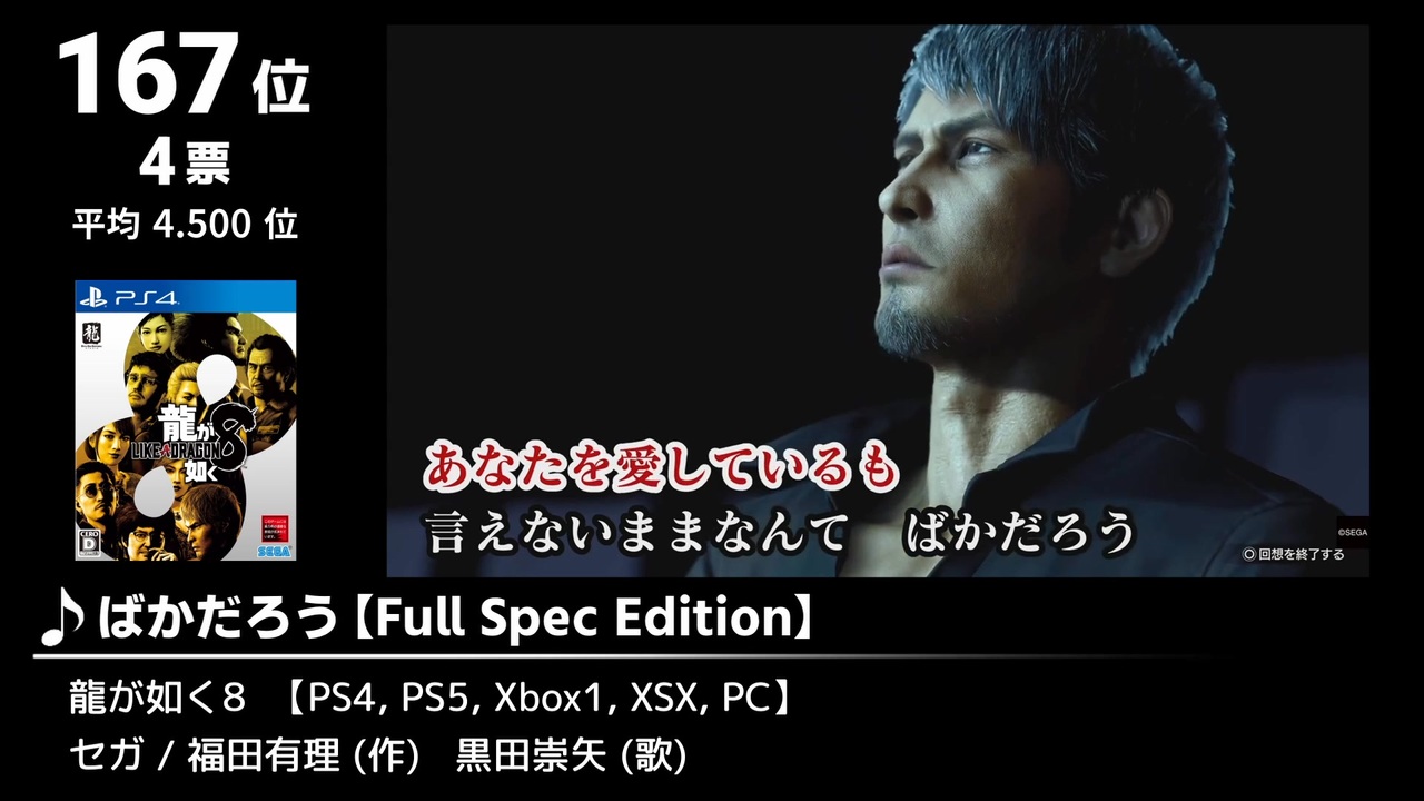 ①<a href="#" class="seekTime" data-seekTime="00:13" onclick="seekNicoPlayer('#00:13'); return false;">#00:13</a> ②<a href="#" class="seekTime" data-seekTime="02:52" onclick="seekNicoPlayer('#02:52'); return false;">#02:52</a> ③<a href="#" class="seekTime" data-seekTime="06:58" onclick="seekNicoPlayer('#06:58'); return false;">#06:58</a> ④<a href="#" class="seekTime" data-seekTime="09:54" onclick="seekNicoPlayer('#09:54'); return false;">#09:54</a> ⑤<a href="#" class="seekTime" data-seekTime="12:47" onclick="seekNicoPlayer('#12:47'); return false;">#12:47</a> ⑥<a href="#" class="seekTime" data-seekTime="15:01" onclick="seekNicoPlayer('#15:01'); return false;">#15:01</a> ⑦<a href="#" class="seekTime" data-seekTime="19:54" onclick="seekNicoPlayer('#19:54'); return false;">#19:54</a> ⑧<a href="#" class="seekTime" data-seekTime="23:17" onclick="seekNicoPlayer('#23:17'); return false;">#23:17</a> ⑨<a href="#" class="seekTime" data-seekTime="27:23" onclick="seekNicoPlayer('#27:23'); return false;">#27:23</a> ⑩<a href="#" class="seekTime" data-seekTime="30:59" onclick="seekNicoPlayer('#30:59'); return false;">#30:59</a> ⑪<a href="#" class="seekTime" data-seekTime="35:14" onclick="seekNicoPlayer('#35:14'); return false;">#35:14</a> ⑫<a href="#" class="seekTime" data-seekTime="36:38" onclick="seekNicoPlayer('#36:38'); return false;">#36:38</a> ⑬<a href="#" class="seekTime" data-seekTime="42:54" onclick="seekNicoPlayer('#42:54'); return false;">#42:54</a> ⑭<a href="#" class="seekTime" data-seekTime="46:37" onclick="seekNicoPlayer('#46:37'); return false;">#46:37</a> ⑮<a href="#" class="seekTime" data-seekTime="50:27" onclick="seekNicoPlayer('#50:27'); return false;">#50:27</a> ⑯<a href="#" class="seekTime" data-seekTime="53:19" onclick="seekNicoPlayer('#53:19'); return false;">#53:19</a> ⑰<a href="#" class="seekTime" data-seekTime="57:30" onclick="seekNicoPlayer('#57:30'); return false;">#57:30</a> ⑱<a href="#" class="seekTime" data-seekTime="60:42" onclick="seekNicoPlayer('#60:42'); return false;">#60:42</a> ⑲<a href="#" class="seekTime" data-seekTime="64:48" onclick="seekNicoPlayer('#64:48'); return false;">#64:48</a> ⑳<a href="#" class="seekTime" data-seekTime="69:22" onclick="seekNicoPlayer('#69:22'); return false;">#69:22</a> ㉑<a href="#" class="seekTime" data-seekTime="72:11" onclick="seekNicoPlayer('#72:11'); return false;">#72:11</a> ㉒<a href="#" class="seekTime" data-seekTime="73:47" onclick="seekNicoPlayer('#73:47'); return false;">#73:47</a> ㉓<a href="#" class="seekTime" data-seekTime="76:47" onclick="seekNicoPlayer('#76:47'); return false;">#76:47</a> ㉔<a href="#" class="seekTime" data-seekTime="79:02" onclick="seekNicoPlayer('#79:02'); return false;">#79:02</a><br><br><br>Part10は183~164位の24曲を収録。<br><br><br>◆2024年のゲーム・サントラ購入先まとめはこちら!<br><a href="https://sinkyoku.blogspot.com/" target="_blank" rel="noopener nofollow">https://sinkyoku.blogspot.com/</a><br>(ぼちぼち追加していきます)<br><br><br><a href="https://www.nicovideo.jp/watch/sm45249856" class="watch">sm45249856</a> ←前【<a href="https://www.nicovideo.jp/mylist/78058006" target="_blank" rel="noopener">mylist/78058006</a>】次→ <a href="https://www.nicovideo.jp/watch/sm45328705" class="watch">sm45328705</a>