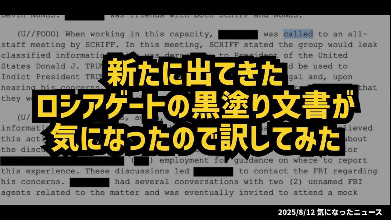 ◆新たに出てきたロシアゲートの黒塗り文書が気になったので訳してみた<br><br>あらすじ/予告編<br>2016年米大統領選挙後の下院情報委員会で、民主党側は深刻な危機感を抱く。ヒラリー・クリントンが勝利していれば、ある議員がCIA長官に就任するはずだったが、それが崩れた。報復として、トランプ陣営とロシアの関与を強調する調査を推進。機密情報をメディアに流し、世論を操作する指示が出る中、マイケル・フリン将軍のロシア接触情報を集めようとする動きが。新公開FBI文書が、その裏側を暴く<br><a href="https://x.com/RealSLokhova/status/1955086320327377004?t=QZb6SQ1ATTvQAdcuBJ6HwA&s=19" target="_blank" rel="noopener nofollow">https://x.com/RealSLokhova/status/1955086320327377004?t=QZb6SQ1ATTvQAdcuBJ6HwA&s=19</a><br><br>◆今回の台本<a href="https://keiichiro8140.hatenablog.com/entry/29250812222222" target="_blank" rel="noopener nofollow">https://keiichiro8140.hatenablog.com/entry/29250812222222</a><br><br>◆チャンネル登録よろしくお願いします<a href="https://youtube.com/@k16_888?si=1S8pLN1Tf9bGiJyV" target="_blank" rel="noopener nofollow">https://youtube.com/@k16_888?si=1S8pLN1Tf9bGiJyV</a><br><br>◆もしも(BAN)の時のためのマイリンク集<a href="https://lit.link/K16_888" target="_blank" rel="noopener nofollow">https://lit.link/K16_888</a><br><br>気になったニュース 2025/8/12<br><br><br />著作権、肖像権に配慮して作成しております。<br><br>◆気になったニュースの台本!?<br>メモ代わりに作った台本をそのままあげてます<br><a href="https://keiichiro8140.hatenablog.com/." target="_blank" rel="noopener nofollow">https://keiichiro8140.hatenablog.com/.</a><br><br><br>ここからはシリーズ紹介<br><br><br>◆ ワクチン解毒・デトックス<br><a href="https://x.gd/fZweg" target="_blank" rel="noopener nofollow">https://x.gd/fZweg</a><br><br>◆ウイリアム・マキス博士のがん治療(イベルメクチン・フェンベンダゾール等)<br><a href="https://x.gd/AtFYS" target="_blank" rel="noopener nofollow">https://x.gd/AtFYS</a><br><br>◆予防接種健康被害救済制度<br><a href="https://x.gd/0xK9x" target="_blank" rel="noopener nofollow">https://x.gd/0xK9x</a><br><br>◆気になったニュース #1501~<br><br>◆ 【ショートver】気になったニュース<br><a href="https://x.gd/7MxXC" target="_blank" rel="noopener nofollow">https://x.gd/7MxXC</a><br><br>◆ 気になったニュース #1001~<br><a href="https://x.gd/Lp8gv" target="_blank" rel="noopener nofollow">https://x.gd/Lp8gv</a><br><br>◆ 気になったニュース #501~<br><a href="https://x.gd/EmbS4" target="_blank" rel="noopener nofollow">https://x.gd/EmbS4</a><br><br>◆ 気になったニュース #1~#500<br><a href="https://x.gd/uPhNb" target="_blank" rel="noopener nofollow">https://x.gd/uPhNb</a><br><br>◆ X(旧Twitter)・テレグラムで気になった情報<br><a href="https://x.gd/YG6FT" target="_blank" rel="noopener nofollow">https://x.gd/YG6FT</a><br><br>◆ 日比谷5万人パレードデ⚪生放送アーカイブ動画<br><a href="https://x.gd/3CHJv" target="_blank" rel="noopener nofollow">https://x.gd/3CHJv</a><br><br>◆日比谷5万人パレード⚪モのマイリスト作ってみました<br><a href="https://nico.ms/mylist/76828848?ref=sp_other" target="_blank" rel="noopener nofollow">https://nico.ms/mylist/76828848?ref=sp_other</a><br><br>◆3.30 令和の百姓⚪⚪<br><a href="https://www.nicovideo.jp/series/511791?ref=garage_share_other" target="_blank" rel="noopener nofollow">https://www.nicovideo.jp/series/511791?ref=garage_share_other</a><br><br>◆ 及川幸久さんの【XNEWS】シリーズ<br><a href="https://x.gd/3k78K" target="_blank" rel="noopener nofollow">https://x.gd/3k78K</a><br><br>◆これまでの動画<a href="https://x.gd/sPXoJ" target="_blank" rel="noopener nofollow">https://x.gd/sPXoJ</a><br><br>◆もしも(BAN)の時のためのマイリンク集<a href="https://lit.link/K-16_News44" target="_blank" rel="noopener nofollow">https://lit.link/K-16_News44</a><br><br>