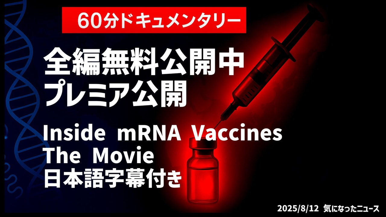 【おすすめ映画情報】◆全編無料公開中 プレミア公開 Inside mRNA Vaccines The Movie<br><br>世界中で広く使われたmRNAワクチン。<br>かつては「新型コロナ対策の切り札と期待されましたが、最新の報告では安全性や長期影響に疑問の声があがっています。<br>この60分ドキュメンタリーでは、専門家の証言や最新研究をもとに、知られざる真実を追究。製薬企業や政府の動き、そして私たちの健康に関わる重要な課題をわかりやすく解説します。ぜひご覧ください。<a href="https://x.com/5rHxIhQGQnnRSOe/status/1955188487436836981?t=XdgZQKy2raTibx5147kx6g&s=19" target="_blank" rel="noopener nofollow">https://x.com/5rHxIhQGQnnRSOe/status/1955188487436836981?t=XdgZQKy2raTibx5147kx6g&s=19</a><br><br>トッポさん字幕ver<br><a href="https://x.com/w2skwn3/status/1955230383647363422?t=UWsJsWl0hhY032KDnuuo1A&s=19" target="_blank" rel="noopener nofollow">https://x.com/w2skwn3/status/1955230383647363422?t=UWsJsWl0hhY032KDnuuo1A&s=19</a><br><br>公式HP<br><a href="https://www.insidemrnavaccines.com/" target="_blank" rel="noopener nofollow">https://www.insidemrnavaccines.com/</a><br><br>◆今回の台本<a href="https://keiichiro8140.hatenablog.com/entry/20250812222888999000" target="_blank" rel="noopener nofollow">https://keiichiro8140.hatenablog.com/entry/20250812222888999000</a><br><br>◆チャンネル登録よろしくお願いします<a href="https://youtube.com/@k16_888?si=1S8pLN1Tf9bGiJyV" target="_blank" rel="noopener nofollow">https://youtube.com/@k16_888?si=1S8pLN1Tf9bGiJyV</a><br><br>◆もしも(BAN)の時のためのマイリンク集<a href="https://lit.link/K16_888" target="_blank" rel="noopener nofollow">https://lit.link/K16_888</a><br><br>気になったニュース 2025/8/12<br><br />著作権、肖像権に配慮して作成しております。<br><br>◆気になったニュースの台本!?<br>メモ代わりに作った台本をそのままあげてます<br><a href="https://keiichiro8140.hatenablog.com/." target="_blank" rel="noopener nofollow">https://keiichiro8140.hatenablog.com/.</a><br><br><br>ここからはシリーズ紹介<br><br><br>◆ ワクチン解毒・デトックス<br><a href="https://x.gd/fZweg" target="_blank" rel="noopener nofollow">https://x.gd/fZweg</a><br><br>◆ウイリアム・マキス博士のがん治療(イベルメクチン・フェンベンダゾール等)<br><a href="https://x.gd/AtFYS" target="_blank" rel="noopener nofollow">https://x.gd/AtFYS</a><br><br>◆予防接種健康被害救済制度<br><a href="https://x.gd/0xK9x" target="_blank" rel="noopener nofollow">https://x.gd/0xK9x</a><br><br>◆気になったニュース #1501~<br><br>◆ 【ショートver】気になったニュース<br><a href="https://x.gd/7MxXC" target="_blank" rel="noopener nofollow">https://x.gd/7MxXC</a><br><br>◆ 気になったニュース #1001~<br><a href="https://x.gd/Lp8gv" target="_blank" rel="noopener nofollow">https://x.gd/Lp8gv</a><br><br>◆ 気になったニュース #501~<br><a href="https://x.gd/EmbS4" target="_blank" rel="noopener nofollow">https://x.gd/EmbS4</a><br><br>◆ 気になったニュース #1~#500<br><a href="https://x.gd/uPhNb" target="_blank" rel="noopener nofollow">https://x.gd/uPhNb</a><br><br>◆ X(旧Twitter)・テレグラムで気になった情報<br><a href="https://x.gd/YG6FT" target="_blank" rel="noopener nofollow">https://x.gd/YG6FT</a><br><br>◆ 日比谷5万人パレードデ⚪生放送アーカイブ動画<br><a href="https://x.gd/3CHJv" target="_blank" rel="noopener nofollow">https://x.gd/3CHJv</a><br><br>◆日比谷5万人パレード⚪モのマイリスト作ってみました<br><a href="https://nico.ms/mylist/76828848?ref=sp_other" target="_blank" rel="noopener nofollow">https://nico.ms/mylist/76828848?ref=sp_other</a><br><br>◆3.30 令和の百姓⚪⚪<br><a href="https://www.nicovideo.jp/series/511791?ref=garage_share_other" target="_blank" rel="noopener nofollow">https://www.nicovideo.jp/series/511791?ref=garage_share_other</a><br><br>◆ 及川幸久さんの【XNEWS】シリーズ<br><a href="https://x.gd/3k78K" target="_blank" rel="noopener nofollow">https://x.gd/3k78K</a><br><br>◆これまでの動画<a href="https://x.gd/sPXoJ" target="_blank" rel="noopener nofollow">https://x.gd/sPXoJ</a><br><br>◆もしも(BAN)の時のためのマイリンク集<a href="https://lit.link/K-16_News44" target="_blank" rel="noopener nofollow">https://lit.link/K-16_News44</a><br><br>
