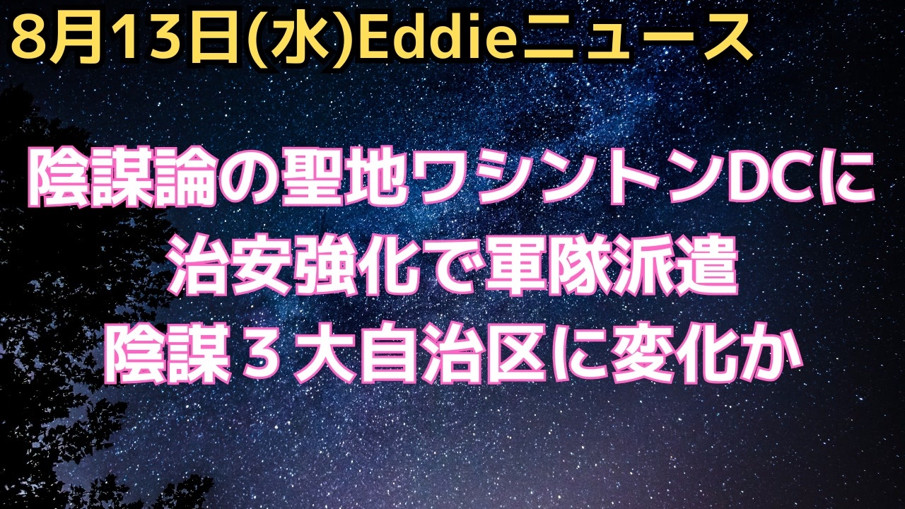 参考URL<br><a href="https://www.whitehouse.gov/presidential-actions/2025/08/declaring-a-crime-emergency-in-the-district-of-columbia/" target="_blank" rel="noopener nofollow">https://www.whitehouse.gov/presidential-actions/2025/08/declaring-a-crime-emergency-in-the-district-of-columbia/</a><br />Eddieと申します。<br>少し引棒めいたニュースを集めて喋っています。<br>よろしくお願いします。<br><br>23時過ぎYouTubeライブ配信(マイペース配信中)<br>「Eddieのホンマやと思うニュース3」<br><a href="https://www.youtube.com/channel/UCKaftD6X-qeHC5Vd9CMCedw" target="_blank" rel="noopener nofollow">https://www.youtube.com/channel/UCKaftD6X-qeHC5Vd9CMCedw</a><br><br>ニコ生は毎週土曜21時半〜(もしくは日曜21時半〜)<br><br>twitter<br>@Eddie2travel<br><br>YouTubeライブ配信1000回記念グッズなど販売中<br><a href="https://suzuri.jp/Eddie-Homma3" target="_blank" rel="noopener nofollow">https://suzuri.jp/Eddie-Homma3</a><br><br>