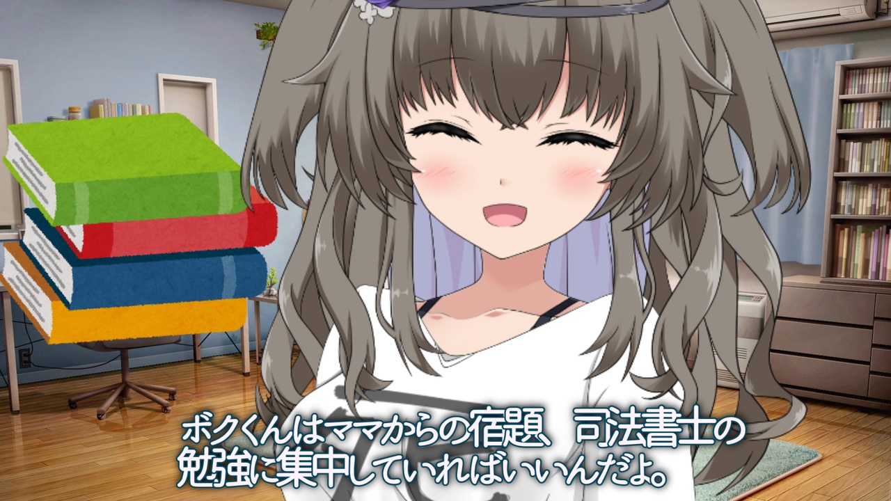 まだやってない・・・<br><br>【出演】<br>四国めたん・・・普段は優しいけど貧乏生活が長かったせいでお金にシビアな面も<br>九州そら・・・おしとやかで年頃の男の子の生態を把握している・・・つもり<br>冥鳴ひまり・・・亡くなった夫の面影を息子に重ね、ボクくんも同じようになってほしいと願っている。<br>もち子さん・・・初登場だよ!キャスターの仕事が忙しいから若干育児放棄気味?<br>リリンちゃん・・・ボクくんも夫も愛してるけど、心の底ではスキャンダル(笑)のチャンスを期待している<br>雨耕はう・・・現役看護師をしながらボクくんを育てるボクくんにもみんなにも優しいママ。<br>春日部つむぎ・・・元ギャルなママ。埼玉出身でどことなく県民性とかおかんっぽさがにじみ出ている。<br><br>【(ほぼ)声のみの出演】<br>東北ずん子・結月ゆかり<br><br>【お借りした素材】<br>立ち絵:坂本アヒル様 アカヤますたー様 浅井麻様 moiky様<br>背景:<a href="https://commons.nicovideo.jp/works/nc230611" target="_blank" rel="noopener">nc230611</a> <a href="https://commons.nicovideo.jp/works/nc298414" target="_blank" rel="noopener">nc298414</a> <a href="https://commons.nicovideo.jp/works/nc351058" target="_blank" rel="noopener">nc351058</a><br>BGM:<a href="https://commons.nicovideo.jp/works/nc214266" target="_blank" rel="noopener">nc214266</a> <a href="https://commons.nicovideo.jp/works/nc256981" target="_blank" rel="noopener">nc256981</a><br><br>四国めたん 九州そら 冥鳴ひまり もち子さん(cv明日葉よもぎ) 雨耕はう 春日部つむぎ<br>powered by VOICEVOX<br><a href="https://voicevox.hiroshiba.jp/" target="_blank" rel="noopener nofollow">https://voicevox.hiroshiba.jp/</a><br>※8/14 もち子さんの声優名を追記しました<br><br>リリンちゃん<br>powered by COEIROINK<br><a href="https://coeiroink.com/" target="_blank" rel="noopener nofollow">https://coeiroink.com/</a>