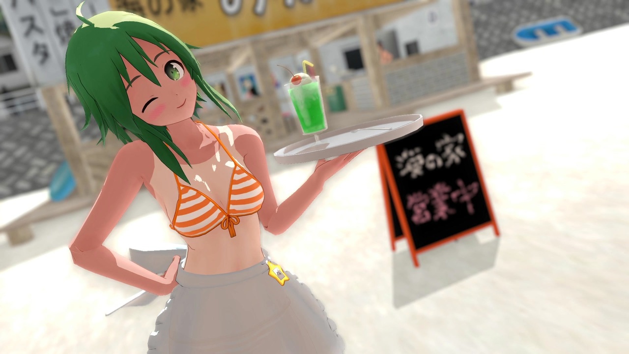 <br>楽しんだので、さぁ帰ろうかと思いましたが、<br>今年もどうやら『海の家』でバイトのようです。<br><br>GUMIちゃんの客引き効果で、どんどん集まってくる、集まってくる・・・<br><br><span style="color: #ffffff; font-size: 10px;">これはご褒美でも貰わないとやってられないな</span><br><br><br><br>以下お借りしたもの<br>モデル :ままま式GUMIβ版.pmd(改変)<br>ステージ :葱焼街ver1.1<br>曲 :【GUMI】放課後ストライド【オリジナル】(<a href="https://www.nicovideo.jp/watch/sm19480453" class="watch">sm19480453</a>)<br>モーション:【MMD/MMM】放課後ストライド踊ってもらった【モーション配布】(<a href="https://www.nicovideo.jp/watch/sm21217143" class="watch">sm21217143</a>)<br>カメラ:【東方MMD】 霊夢さんで放課後ストライド(<a href="https://www.nicovideo.jp/watch/sm27218967" class="watch">sm27218967</a>)<br>その他:A-Toon_v1.02<br> ikLensGhost<br> ikBokeh_v017<br> 学ラン君<br> 簡易水着ボディ<br> <br><br>★ サービス中<br><br><a target="_blank" href="https://qa.nicovideo.jp/faq/show/19424?site_domain=default" style="font-size: 13px;color: #657586; text-decoration: underline; line-height: 1.4">この動画は投稿者によって修正されました</a>