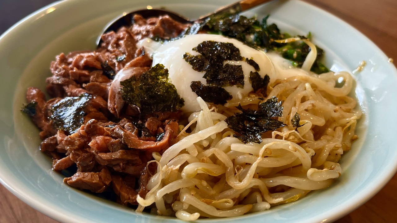 【材料】2人前<br>・牛モモブロック 300g<br>・塩胡椒 適量<br>・もやし 1袋<br>・ほうれん草 100g<br>ナムルソース<br>・鶏がらスープの素 大さじ1<br>・白炒りごま 大さじ1<br>・ごま油 大さじ2<br>・おろしニンニク 小さじ2<br>ユッケソース<br>・コチュジャン 小さじ1<br>・醤油 大さじ1<br>・ごま油 大さじ1<br>・おろしニンニク 小さじ1<br><br>・ご飯 好きなだけ<br>・温泉卵 2つ<br>・韓国海苔 1つ<br><br>■書籍出版中!<br>レシピ本<br>・ビールめし2<br><a href="https://amzn.asia/d/1mKdpPV" target="_blank" rel="noopener nofollow">https://amzn.asia/d/1mKdpPV</a><br>・ビールめし<br><a href="https://amzn.asia/d/4hb1b0Y" target="_blank" rel="noopener nofollow">https://amzn.asia/d/4hb1b0Y</a><br><br>■KBCポジモン!<br>毎週金曜あさ6時半〜12時まで<br>KBCラジオにて5時間半の生放送!<br>4/4(金)スタートです!<br>・番組URL<br><a href="https://kbc.co.jp/r-radio/posi-mon/" target="_blank" rel="noopener nofollow">https://kbc.co.jp/r-radio/posi-mon/</a><br>・お便りはコチラ<br>mail:posi@kbc.co.jp<br>・スマホ視聴はコチラ<br>radiko: <a href="https://radiko.jp/share/?t=20250404063000&sid=KBC" target="_blank" rel="noopener nofollow">https://radiko.jp/share/?t=20250404063000&sid=KBC</a><br><br>■YouTubeメンバーシップのお知らせ<br>諸事情により直近1年間以前に投稿した動画は、コラボ動画や一部の動画を除いて非公開にしておりましたが、この度メンバー限定にて公開させていただきます。<br><a href="https://www.youtube.com/channel/UCbbdPm3A4N4wDf-gsGzOKuQ/join" target="_blank" rel="noopener nofollow">https://www.youtube.com/channel/UCbbdPm3A4N4wDf-gsGzOKuQ/join</a><br><br>■投稿者各種SNS<br>・ツイッチのアカウント<br><a href="https://www.twitch.tv/tokkun_game" target="_blank" rel="noopener nofollow">https://www.twitch.tv/tokkun_game</a><br>・Twitterアカウントあります<br><a href="https://twitter.com/kuntotu" target="_blank" rel="noopener nofollow">https://twitter.com/kuntotu</a><br>・Instagramもあります<br><a href="https://www.instagram.com/kuntotu/" target="_blank" rel="noopener nofollow">https://www.instagram.com/kuntotu/</a><br><br>■お問い合わせ等<br>〒150-0001<br>東京都渋谷区神宮前6-12-20 J6 Frontビル 6F<br>株式会社Carry On<br>「とっくん」宛<br>※ 冷蔵・冷凍が必要な、なま物の受付はできません。<br>tokkun26sai@gmail.com
