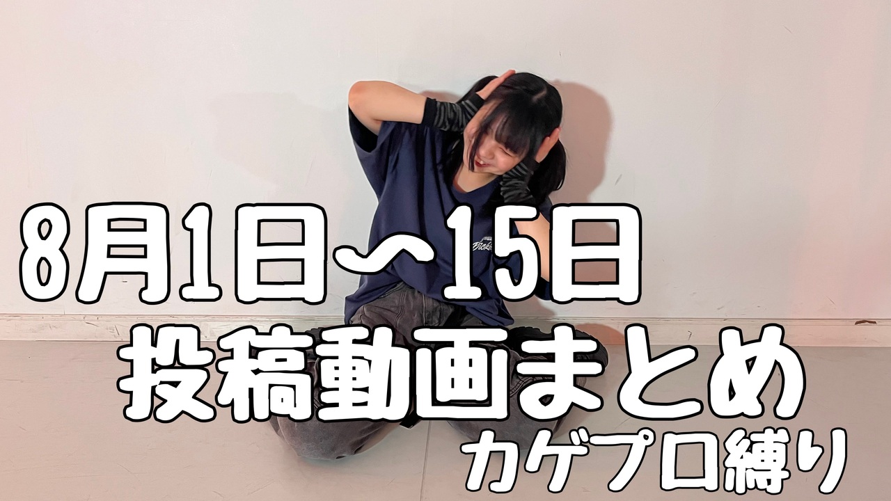 こんばんは!さやかぽてとです^ ^<br>本日の投稿は、8月前半の踊ってみたのまとめです!<br>カゲプロ縛りで投稿したいと思い始めたのは3年前ぐらいからなのですが、やっと形にできてso happyです(^O^)<br>もし少しでも良いなと思った作品がありましたら、元動画もみてくださると幸いです。<br><br>8/1「dase」<a href="https://www.nicovideo.jp/watch/sm45246812" class="watch">sm45246812</a> 振付:みんなのせい坊様<br>8/2「如月アテンション」<a href="https://www.nicovideo.jp/watch/sm45249942" class="watch">sm45249942</a><br>8/3「オツキミリサイタル」<a href="https://www.nicovideo.jp/watch/sm45250921" class="watch">sm45250921</a><br>8/4「夕景イエスタデイ」<a href="https://www.nicovideo.jp/watch/sm45256836" class="watch">sm45256836</a><br>8/5「アヤノの幸福理論」<a href="https://www.nicovideo.jp/watch/sm45259201" class="watch">sm45259201</a> 振付:七井緋菜様<br>8/6「ロスタイムメモリー」<a href="https://www.nicovideo.jp/watch/sm45262858" class="watch">sm45262858</a> 振付:24(ふうし)様<br>8/7「days」<a href="https://www.nicovideo.jp/watch/sm45266188" class="watch">sm45266188</a> 振付:24(ふうし)様<br>8/8「RED」<a href="https://www.nicovideo.jp/watch/sm45268354" class="watch">sm45268354</a> 振付:24(ふうし)様<br>8/9「ヘッドフォンアクター」<a href="https://www.nicovideo.jp/watch/sm45273345" class="watch">sm45273345</a> 振付:さくらみか様<br>8/10「サマータイムレコード」<a href="https://www.nicovideo.jp/watch/sm45275959" class="watch">sm45275959</a><br>8/11「少年ブレイヴ」<a href="https://www.nicovideo.jp/watch/sm45278605" class="watch">sm45278605</a> 振付:あかいろ様<br>8/12「コノハの世界事情」<a href="https://www.nicovideo.jp/watch/sm45283342" class="watch">sm45283342</a> 振付:され様<br>8/13「透明アンサー」<a href="https://www.nicovideo.jp/watch/sm45285451" class="watch">sm45285451</a> 振付:ぱん。様<br>8/14「夜咄ディセイブ」<a href="https://www.nicovideo.jp/watch/sm45289639" class="watch">sm45289639</a><br>8/15「チルドレンレコード」<a href="https://www.nicovideo.jp/watch/sm45291039" class="watch">sm45291039</a><br><br>関わってくださった皆様、見てくださった皆様、いいねマイリスコメント広告などしてくださった皆様、とにかく全員に大感謝です!!<br>そして素敵な楽曲を生み出してくださって私の青春を作ってくださったじん(自然の敵)P様、本当にありがとうございます。これからも大好きです<br><br>踊った人▶さやかぽてと<br>X(旧Twitter):<a href="https://twitter.com/SAYAKA_potatoo" target="_blank" rel="noopener nofollow">https://twitter.com/SAYAKA_potatoo</a><br>マイリスト:<a href="https://www.nicovideo.jp/mylist/69234306" target="_blank" rel="noopener nofollow">https://www.nicovideo.jp/mylist/69234306</a><br>シリーズ: <a href="https://www.nicovideo.jp/series/175614" target="_blank" rel="noopener">series/175614</a><br><br>▽ご視聴ありがとうございました!▽<br>コメント・アドバイス等お待ちしております!<br>また次の動画でお会いしましょう♡