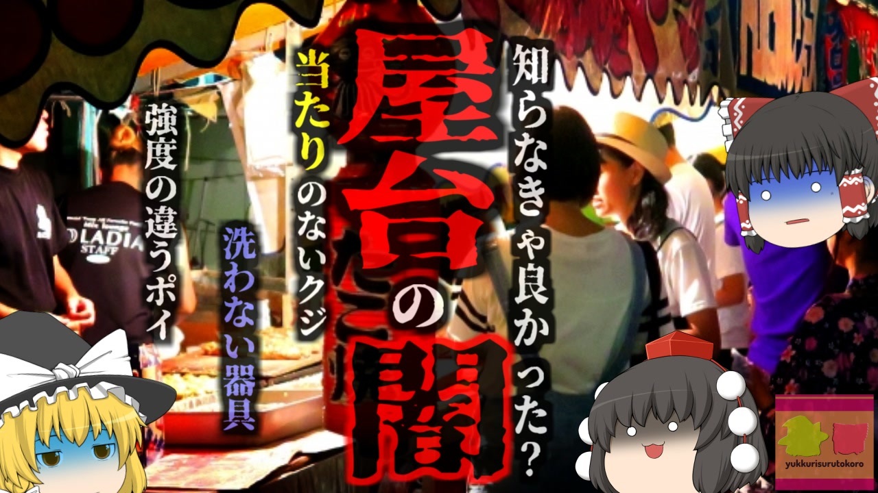 <a href="#" class="seekTime" data-seekTime="00:07" onclick="seekNicoPlayer('#00:07'); return false;">#00:07</a> お祭り・縁日<br><a href="#" class="seekTime" data-seekTime="1:03" onclick="seekNicoPlayer('#1:03'); return false;">#1:03</a> 牛タン屋台が炎上<br><a href="#" class="seekTime" data-seekTime="1:48" onclick="seekNicoPlayer('#1:48'); return false;">#1:48</a> コメント欄に寄せられた体験談<br><a href="#" class="seekTime" data-seekTime="2:51" onclick="seekNicoPlayer('#2:51'); return false;">#2:51</a> どのような違反や罰が考えられるのか?<br><a href="#" class="seekTime" data-seekTime="5:10" onclick="seekNicoPlayer('#5:10'); return false;">#5:10</a> きめぇ丸のインタビュー<br><a href="#" class="seekTime" data-seekTime="5:42" onclick="seekNicoPlayer('#5:42'); return false;">#5:42</a> かつての屋台裏方で行われていたこと<br><a href="#" class="seekTime" data-seekTime="6:26" onclick="seekNicoPlayer('#6:26'); return false;">#6:26</a> アタリの無いくじ<br><a href="#" class="seekTime" data-seekTime="6:58" onclick="seekNicoPlayer('#6:58'); return false;">#6:58</a> 実は強度が異なるポイ<br><a href="#" class="seekTime" data-seekTime="8:00" onclick="seekNicoPlayer('#8:00'); return false;">#8:00</a> 営業にはいくかの許可が必要<br><a href="#" class="seekTime" data-seekTime="8:47" onclick="seekNicoPlayer('#8:47'); return false;">#8:47</a> PTAや自治会のお祭りは非常に良心的<br><a href="#" class="seekTime" data-seekTime="9:55" onclick="seekNicoPlayer('#9:55'); return false;">#9:55</a> 摘発が難しい理由<br><a href="#" class="seekTime" data-seekTime="12:25" onclick="seekNicoPlayer('#12:25'); return false;">#12:25</a> 日本の文化「縁日屋台」とその付き合い方<br><br>引用・出展・参考文献(視聴者提供資料など<br>東京都保健医療局 食品衛生の窓<br>飲食店向け食物アレルギー対策について<br><a href="https://x.gd/v4xVZ" target="_blank" rel="noopener nofollow">https://x.gd/v4xVZ</a><br>Yahoo!ニュース <br><a href="https://x.gd/wj9mB" target="_blank" rel="noopener nofollow">https://x.gd/wj9mB</a><br><br />※この動画は過去の事件を知り、現在でも同じことが発生する危険性を再認識、関与しないように促すための動画であり、視聴者を扇動、動揺を誘うためのコンテンツではありません。<br><br>ご要望にお応えして、メンバーシップの開設を行いました。<br>下記URLからも登録可能ですので、ご興味がある方は是非ご参加ください。<br><a href="https://www.youtube.com/channel/UCcT5a1J7XJW7CLYI2RKl4pw/join" target="_blank" rel="noopener nofollow">https://www.youtube.com/channel/UCcT5a1J7XJW7CLYI2RKl4pw/join</a><br><br><br>Twitter<br>→<a href="https://twitter.com/yukkurisurutoko" target="_blank" rel="noopener nofollow">https://twitter.com/yukkurisurutoko</a><br><br>取り急ぎ、簡易的にですがマイリストを作りました。<br>【ゆっくり解説】事故・事件関係紹介リスト <br><a href="https://www.nicovideo.jp/mylist/71034319" target="_blank" rel="noopener nofollow">https://www.nicovideo.jp/mylist/71034319</a><br>【ゆっくり解説】放射線系事故<br><a href="https://www.nicovideo.jp/mylist/71034368" target="_blank" rel="noopener nofollow">https://www.nicovideo.jp/mylist/71034368</a><br>【ゆっくり解説】鉄道系事故・事件関連<br><a href="https://www.nicovideo.jp/mylist/71034379" target="_blank" rel="noopener nofollow">https://www.nicovideo.jp/mylist/71034379</a>