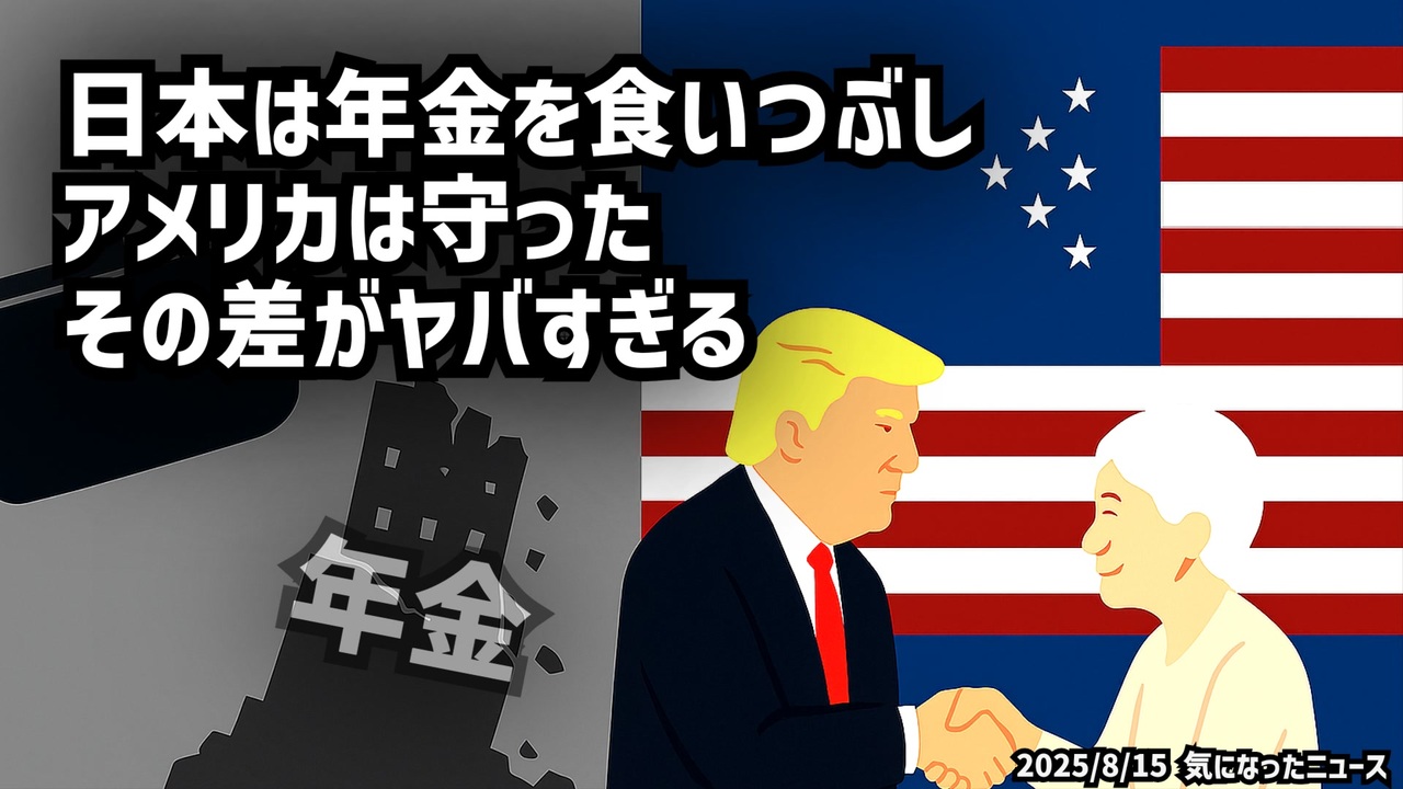 ◆日本は年金を食いつぶし、アメリカは守った その差がヤバすぎる<br><br>あらすじ/予告編<br>日本の年金制度は、積立方式から1970年代の自民党政権下で賦課方式へ移行し、蓄積資金が消費された結果、現役負担が増大。不正監視も不十分だ。一方、トランプ大統領は社会保障法90周年で課税ゼロ法案署名、不法移民27.5万人排除、120歳超1,240万名データベース削除を実施。詐欺追及で制度強化を主張し、バイデン政権を批判。日本は徹底改革欠如と比較される衝撃的内容。<br><br>ホワイトハウス<a href="https://x.com/WhiteHouse/status/1956058402565521589" target="_blank" rel="noopener nofollow">https://x.com/WhiteHouse/status/1956058402565521589</a><br><br>日本は年金積立方式自民党に食い潰されました<a href="https://x.com/e_cqwz/status/1937865946179522929?t=90o6CBU05ug3dOkNNzvzVw&s=19" target="_blank" rel="noopener nofollow">https://x.com/e_cqwz/status/1937865946179522929?t=90o6CBU05ug3dOkNNzvzVw&s=19</a><br><br>◆今回の台本<a href="https://keiichiro8140.hatenablog.com/entry/20250815555111" target="_blank" rel="noopener nofollow">https://keiichiro8140.hatenablog.com/entry/20250815555111</a><br><br>◆チャンネル登録よろしくお願いします<a href="https://youtube.com/@k16_888?si=1S8pLN1Tf9bGiJyV" target="_blank" rel="noopener nofollow">https://youtube.com/@k16_888?si=1S8pLN1Tf9bGiJyV</a><br><br>◆もしも(BAN)の時のためのマイリンク集<a href="https://lit.link/K16_888" target="_blank" rel="noopener nofollow">https://lit.link/K16_888</a><br><br>気になったニュース 2025/8/15<br><br />著作権、肖像権に配慮して作成しております。<br><br>◆気になったニュースの台本!?<br>メモ代わりに作った台本をそのままあげてます<br><a href="https://keiichiro8140.hatenablog.com/." target="_blank" rel="noopener nofollow">https://keiichiro8140.hatenablog.com/.</a><br><br><br>ここからはシリーズ紹介<br><br><br>◆ ワクチン解毒・デトックス<br><a href="https://x.gd/fZweg" target="_blank" rel="noopener nofollow">https://x.gd/fZweg</a><br><br>◆ウイリアム・マキス博士のがん治療(イベルメクチン・フェンベンダゾール等)<br><a href="https://x.gd/AtFYS" target="_blank" rel="noopener nofollow">https://x.gd/AtFYS</a><br><br>◆予防接種健康被害救済制度<br><a href="https://x.gd/0xK9x" target="_blank" rel="noopener nofollow">https://x.gd/0xK9x</a><br><br>◆気になったニュース #1501~<br><br>◆ 【ショートver】気になったニュース<br><a href="https://x.gd/7MxXC" target="_blank" rel="noopener nofollow">https://x.gd/7MxXC</a><br><br>◆ 気になったニュース #1001~<br><a href="https://x.gd/Lp8gv" target="_blank" rel="noopener nofollow">https://x.gd/Lp8gv</a><br><br>◆ 気になったニュース #501~<br><a href="https://x.gd/EmbS4" target="_blank" rel="noopener nofollow">https://x.gd/EmbS4</a><br><br>◆ 気になったニュース #1~#500<br><a href="https://x.gd/uPhNb" target="_blank" rel="noopener nofollow">https://x.gd/uPhNb</a><br><br>◆ X(旧Twitter)・テレグラムで気になった情報<br><a href="https://x.gd/YG6FT" target="_blank" rel="noopener nofollow">https://x.gd/YG6FT</a><br><br>◆ 日比谷5万人パレードデ⚪生放送アーカイブ動画<br><a href="https://x.gd/3CHJv" target="_blank" rel="noopener nofollow">https://x.gd/3CHJv</a><br><br>◆日比谷5万人パレード⚪モのマイリスト作ってみました<br><a href="https://nico.ms/mylist/76828848?ref=sp_other" target="_blank" rel="noopener nofollow">https://nico.ms/mylist/76828848?ref=sp_other</a><br><br>◆3.30 令和の百姓⚪⚪<br><a href="https://www.nicovideo.jp/series/511791?ref=garage_share_other" target="_blank" rel="noopener nofollow">https://www.nicovideo.jp/series/511791?ref=garage_share_other</a><br><br>◆ 及川幸久さんの【XNEWS】シリーズ<br><a href="https://x.gd/3k78K" target="_blank" rel="noopener nofollow">https://x.gd/3k78K</a><br><br>◆これまでの動画<a href="https://x.gd/sPXoJ" target="_blank" rel="noopener nofollow">https://x.gd/sPXoJ</a><br><br>◆もしも(BAN)の時のためのマイリンク集<a href="https://lit.link/K-16_News44" target="_blank" rel="noopener nofollow">https://lit.link/K-16_News44</a><br><br>
