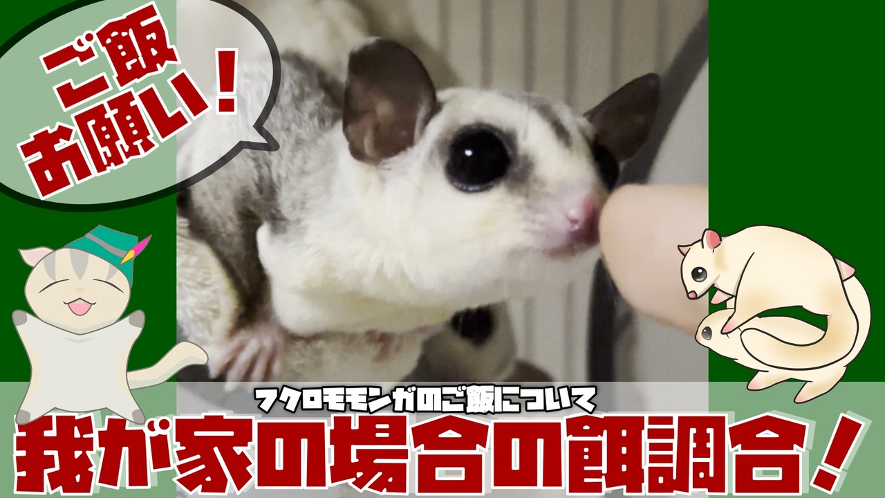 現在は6種類のご飯の調合を試しています。<br><br>-----<br>#sugerglider #フクモモ #蜜袋鼯 #슈가글라이더 #animal #pet #ペット #動物 #小動物 #smallpet #smallpets #シュガーグライダー <br><br>以前ショート動画でもお見せしましたが、その拡張版って感じで見ていただけると嬉しいです。<br><br>-----<br><br>我が家のフクロモモンガの家系図などはこちらをどうぞ<br><a href="https://www.gelehrte.com/sugarglider/" target="_blank" rel="noopener nofollow">https://www.gelehrte.com/sugarglider/</a><br><br>サブチャンネルもよろしくね<br>ゲレの工房 games<br><a href="https://www.youtube.com/channel/UCgnfLlMe4mYJSX7bD3tbYhw/playlists" target="_blank" rel="noopener nofollow">https://www.youtube.com/channel/UCgnfLlMe4mYJSX7bD3tbYhw/playlists</a><br><br>-----<br>BGM<br><a href="https://commons.nicovideo.jp/works/nc416532" target="_blank" rel="noopener">nc416532</a><br />-----<br><br>質問などがありましたらコメントへ<br>もしくはmondやマシュマロへお願いします。雑談のテーマにさせていただきます。<br><a href="https://mond.how/ja/gelehrte" target="_blank" rel="noopener nofollow">https://mond.how/ja/gelehrte</a><br><a href="https://marshmallow-qa.com/gelehrte_crest?t=32mCWZ&utm_medium=url_text&utm_source=promotion" target="_blank" rel="noopener nofollow">https://marshmallow-qa.com/gelehrte_crest?t=32mCWZ&utm_medium=url_text&utm_source=promotion</a><br><br>-----<br>素材<br><br>もみじちゃんねる<br><a href="https://www.youtube.com/channel/UC_8XpcBi0WxI8W9SB4KVSIg" target="_blank" rel="noopener nofollow">https://www.youtube.com/channel/UC_8XpcBi0WxI8W9SB4KVSIg</a><br>ニコニ・コモンズ<br>吹き出し<br><a href="https://commons.nicovideo.jp/works/nc311201" target="_blank" rel="noopener">nc311201</a><br>きりたん<br><a href="https://commons.nicovideo.jp/works/nc192539" target="_blank" rel="noopener">nc192539</a><br><br>エンディングBGM<br>[フリーBGM] ピアノをメインとしたエンディング曲<br><a href="https://youtu.be/pArwh7YWpQ4" target="_blank" rel="noopener nofollow">https://youtu.be/pArwh7YWpQ4</a><br><a href="https://commons.nicovideo.jp/works/nc407623" target="_blank" rel="noopener">nc407623</a>