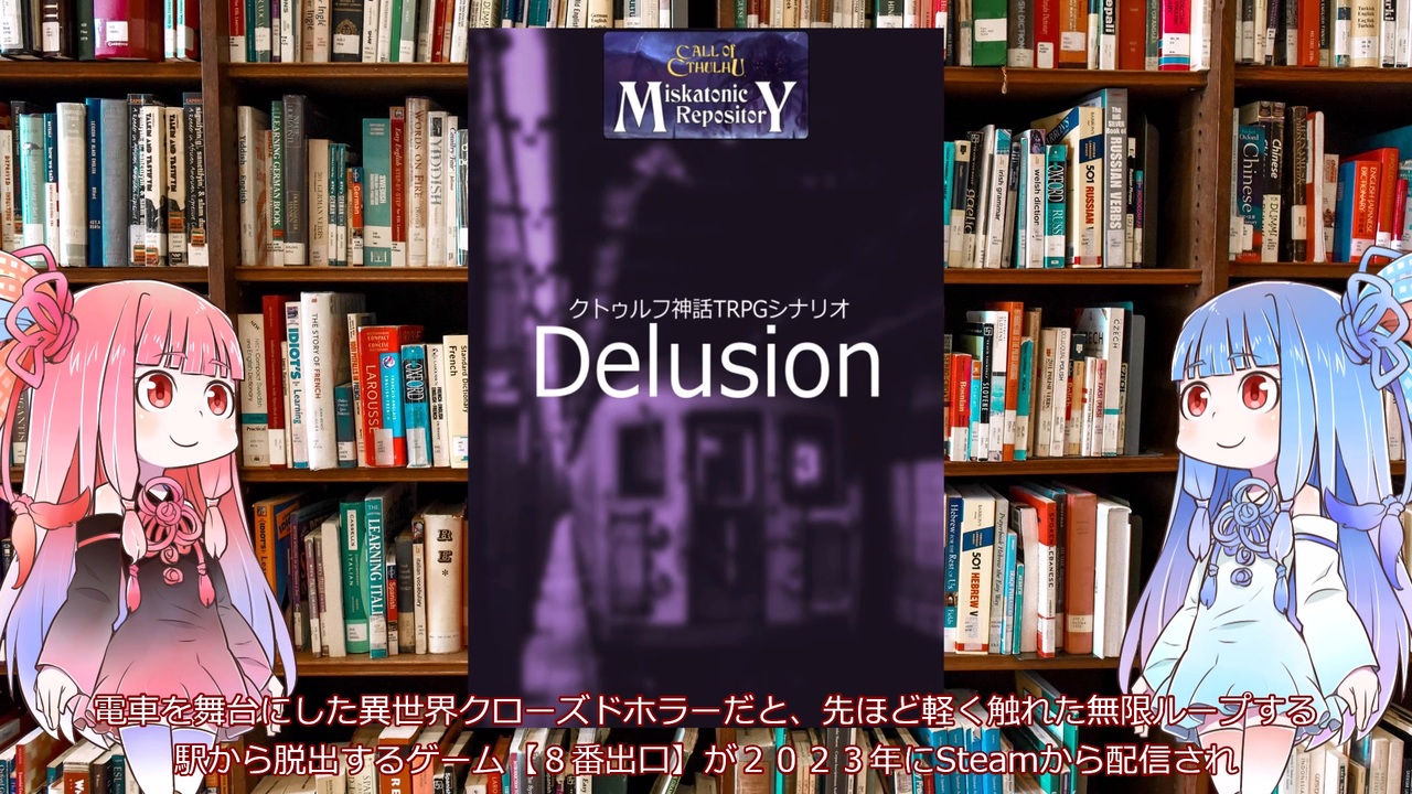 アメリカの公式ライセンス【ミスカトニックリポジトリ】で2020年に発売された新クトゥルフ神話TRPGシナリオ【妄想(Delusion)】を解説します。<br>日本の地下鉄のホームを舞台にした異世界脱出クローズとシナリオです。<br>ゲーム【8番出口】と同じ電車の駅を舞台にしたシナリオですが、ゲームコンセプトは異なるシナリオです。<br>2021年にエモクロアTRPGに対応したシナリオも無料公開されています。<br>ソロプレイや多人数で遊べ、短時間でプレイできます。<br><br><br>【いいね】ボタンを押すと、シナリオのベースとなった楽曲の情報を閲覧できます。<br><br><br>【妄想(Delusion) 新クトゥルフ神話TRPG 販売サイトDrivethrurpg】<br><a href="https://www.drivethrurpg.com/en/product/275795/japanese-trpg-delusion-miskatonic-repository" target="_blank" rel="noopener nofollow">https://www.drivethrurpg.com/en/product/275795/japanese-trpg-delusion-miskatonic-repository</a><br><br>【ユメの少女 エモクロア Booth無料公開サイト】<br><a href="https://booth.pm/ja/items/2856097?srsltid=AfmBOoqW1FxzvTGIWndPHVcl2s1SHbJtXGk9RbAJA_utF3X4ou0YK_Zp" target="_blank" rel="noopener nofollow">https://booth.pm/ja/items/2856097?srsltid=AfmBOoqW1FxzvTGIWndPHVcl2s1SHbJtXGk9RbAJA_utF3X4ou0YK_Zp</a><br><br><br>【ミスカトニックリポジトリ紹介動画】<br><a href="https://nico.ms/sm40683241" target="_blank" rel="noopener nofollow">https://nico.ms/sm40683241</a><br><br>【白い部屋の時代 解説動画】<br><a href="https://www.nicovideo.jp/watch/sm40414101" target="_blank" rel="noopener nofollow">https://www.nicovideo.jp/watch/sm40414101</a><br><br><br>マイリスト <a href="https://www.nicovideo.jp/mylist/68942133" target="_blank" rel="noopener">mylist/68942133</a><br>ロンドン警視庁特殊犯罪課 <a href="https://www.nicovideo.jp/mylist/76853375" target="_blank" rel="noopener">mylist/76853375</a><br>デルタグリーン(マイリスト) <a href="https://www.nicovideo.jp/mylist/55536957" target="_blank" rel="noopener">mylist/55536957</a><br>七伏市(マイリスト)<a href="https://www.nicovideo.jp/mylist/77850460" target="_blank" rel="noopener">mylist/77850460</a><br>古代ローマ(マイリスト) <a href="https://www.nicovideo.jp/mylist/56513561" target="_blank" rel="noopener">mylist/56513561</a><br>深淵の系譜(マイリスト) <a href="https://www.nicovideo.jp/mylist/60767217" target="_blank" rel="noopener">mylist/60767217</a><br>大怪盗アルバトロス(マイリスト) <a href="https://www.nicovideo.jp/mylist/68942133" target="_blank" rel="noopener">mylist/68942133</a><br>イゴの富士 <a href="https://www.nicovideo.jp/mylist/69357718" target="_blank" rel="noopener">mylist/69357718</a>