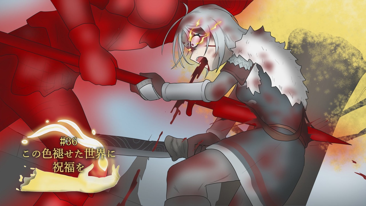 <span style="color: #ff00ff; font-size: 18px;"><strong>刃が貫いた先の服の布地を持っていってる癖</strong></span><br><br>赤霊は赤すぎて装備のデザインが分かりにくく絵にするのは難しい。<br>でもそれはそれとしてお嬢がひどい死に方してる絵を描きたい。<br><br><span style="color: #ff0000;"><strong>前回→</strong></span><a href="https://www.nicovideo.jp/watch/sm45025853" class="watch">sm45025853</a> <span style="color: #0000ff;"><strong>次回→</strong></span><a href="https://www.nicovideo.jp/watch/sm45366438" class="watch">sm45366438</a><br><span style="color: #ff00ff;"><strong>この色褪せた世界に祝福を→</strong></span><a href="https://www.nicovideo.jp/mylist/73011558" target="_blank" rel="noopener">mylist/73011558</a><br><span style="color: #00ff00;"><strong>Pixiv→</strong></span><a href="https://www.pixiv.net/member.php?id=20356595" target="_blank" rel="noopener nofollow">https://www.pixiv.net/member.php?id=20356595</a>