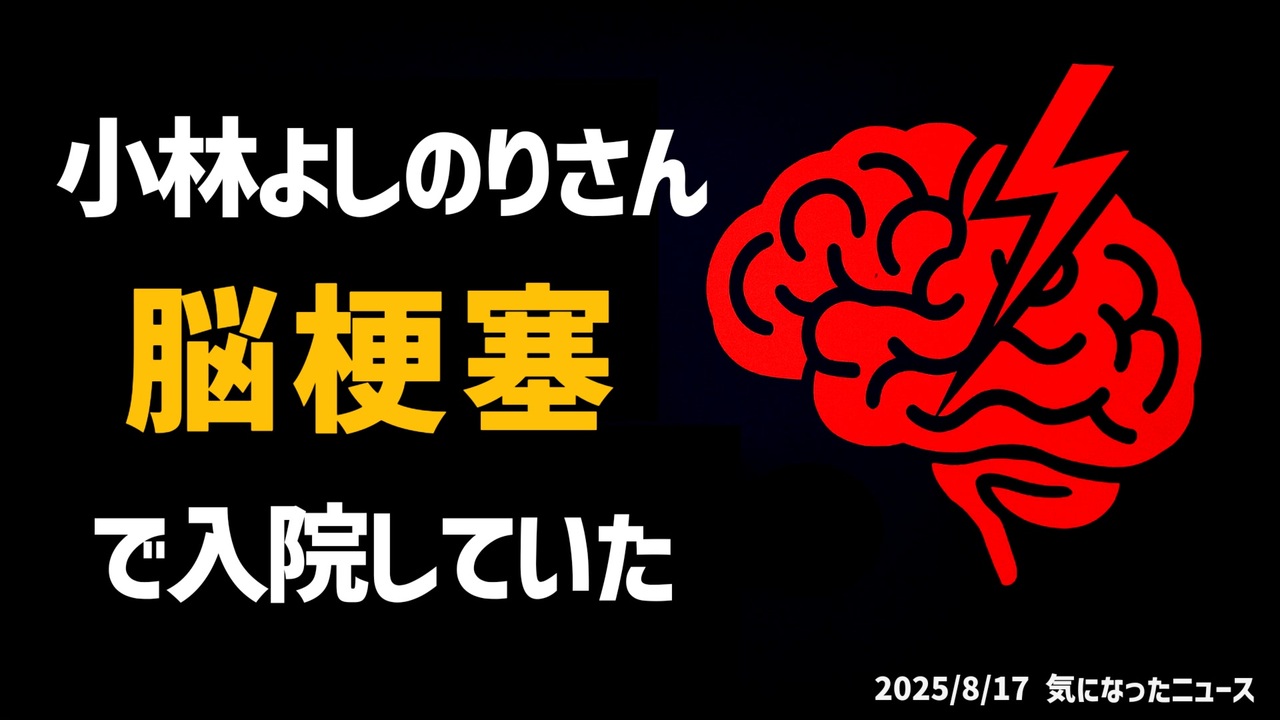 ◆小林よしのりさん脳梗塞で入院していた<br><br>あらすじ/予告編<br>漫画家の小林よしのりさん(71)が脳梗塞で入院。左半身の痺れから脳検査で血栓と過去の脳出血跡が判明し、HCUで治療中。ワクチン未接種も原因は加齢や生活習慣とされる。シェディングの関連は科学的未検証。リハビリに励む小林さんの回復への意気込みと、普段のノーマスク生活を振り返る。健康管理の重要性を問う話題に。<br><br>◆今回の台本<a href="https://keiichiro8140.hatenablog.com/entry/20250817777111" target="_blank" rel="noopener nofollow">https://keiichiro8140.hatenablog.com/entry/20250817777111</a><br><br>◆もしも(BAN)の時のためのマイリンク集<a href="https://lit.link/K16_888" target="_blank" rel="noopener nofollow">https://lit.link/K16_888</a><br><br>◆チャンネル登録よろしくお願いします<a href="https://youtube.com/@k16_888?si=1S8pLN1Tf9bGiJyV" target="_blank" rel="noopener nofollow">https://youtube.com/@k16_888?si=1S8pLN1Tf9bGiJyV</a><br><br>気になったニュース 2025/8/17<br><br />著作権、肖像権に配慮して作成しております。<br><br>◆気になったニュースの台本!?<br>メモ代わりに作った台本をそのままあげてます<br><a href="https://keiichiro8140.hatenablog.com/." target="_blank" rel="noopener nofollow">https://keiichiro8140.hatenablog.com/.</a><br><br><br>ここからはシリーズ紹介<br><br><br>◆ ワクチン解毒・デトックス<br><a href="https://x.gd/fZweg" target="_blank" rel="noopener nofollow">https://x.gd/fZweg</a><br><br>◆ウイリアム・マキス博士のがん治療(イベルメクチン・フェンベンダゾール等)<br><a href="https://x.gd/AtFYS" target="_blank" rel="noopener nofollow">https://x.gd/AtFYS</a><br><br>◆予防接種健康被害救済制度<br><a href="https://x.gd/0xK9x" target="_blank" rel="noopener nofollow">https://x.gd/0xK9x</a><br><br>◆気になったニュース #1501~<br><br>◆ 【ショートver】気になったニュース<br><a href="https://x.gd/7MxXC" target="_blank" rel="noopener nofollow">https://x.gd/7MxXC</a><br><br>◆ 気になったニュース #1001~<br><a href="https://x.gd/Lp8gv" target="_blank" rel="noopener nofollow">https://x.gd/Lp8gv</a><br><br>◆ 気になったニュース #501~<br><a href="https://x.gd/EmbS4" target="_blank" rel="noopener nofollow">https://x.gd/EmbS4</a><br><br>◆ 気になったニュース #1~#500<br><a href="https://x.gd/uPhNb" target="_blank" rel="noopener nofollow">https://x.gd/uPhNb</a><br><br>◆ X(旧Twitter)・テレグラムで気になった情報<br><a href="https://x.gd/YG6FT" target="_blank" rel="noopener nofollow">https://x.gd/YG6FT</a><br><br>◆ 日比谷5万人パレードデ⚪生放送アーカイブ動画<br><a href="https://x.gd/3CHJv" target="_blank" rel="noopener nofollow">https://x.gd/3CHJv</a><br><br>◆日比谷5万人パレード⚪モのマイリスト作ってみました<br><a href="https://nico.ms/mylist/76828848?ref=sp_other" target="_blank" rel="noopener nofollow">https://nico.ms/mylist/76828848?ref=sp_other</a><br><br>◆3.30 令和の百姓⚪⚪<br><a href="https://www.nicovideo.jp/series/511791?ref=garage_share_other" target="_blank" rel="noopener nofollow">https://www.nicovideo.jp/series/511791?ref=garage_share_other</a><br><br>◆ 及川幸久さんの【XNEWS】シリーズ<br><a href="https://x.gd/3k78K" target="_blank" rel="noopener nofollow">https://x.gd/3k78K</a><br><br>◆これまでの動画<a href="https://x.gd/sPXoJ" target="_blank" rel="noopener nofollow">https://x.gd/sPXoJ</a><br><br>◆もしも(BAN)の時のためのマイリンク集<a href="https://lit.link/K-16_News44" target="_blank" rel="noopener nofollow">https://lit.link/K-16_News44</a><br><br>