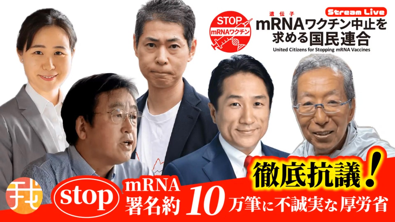 元の動画 → <a href="https://www.youtube.com/watch?v=qFyMRUhJFs8" target="_blank" rel="noopener nofollow">https://www.youtube.com/watch?v=qFyMRUhJFs8</a><br>【生配信】8月17日20時〜 Stop mRNA署名約10万筆に不誠実な厚労省 徹底抗議! <br><br>mRNAワクチン中止を求める国民連合は、7 月 10 日(木)参議院議員 川田龍平議員(当時)とともに厚生労働省に署名を提出しました。 <br>提出された署名は延べ10万筆 <br>しかし、厚労省の対応、そして返答は不誠実極まりないものであり、多くの国民が命を落としているにも関わらず、未だに注射は安心安全と謳っています。 <br><br>国民連合が作成している注射のロットごとの被害状況などを表した2500万件超に登るデータベースを見ても、これは有耶無耶にしてよい問題ではありません。 <br><br>今回は、この署名活動の状況、厚労省の対応について議論するための生配信を行います。 皆様ぜひご覧ください。 <br><br>参加者 <br>後藤 均(mRNAワクチン中止を求める国民連合代表、医学博士・医師東北有志医師の会) <br>村上康文(mRNAワクチン中止を求める国民連合副代表、東京理科大学名誉教授) <br>川田龍平(前参議院議員) <br>藤江成光(日本の人口増加を目指すYouTuber&記者、元国会議員秘書) <br><br>mRNAワクチン中止を求める国民連合 <br><a href="https://stop-mrna.com/" target="_blank" rel="noopener nofollow">https://stop-mrna.com/</a><br><br><br><a href="https://www.youtube.com/@masakoganaha" target="_blank" rel="noopener nofollow">https://www.youtube.com/@masakoganaha</a><br>我那覇真子チャンネル<br><br>説明<br>Masako Ganaha from Okinawa, Japan! I <br>love to hang out with patriots! <br><br>我那覇真子(がなはまさこ)と申します。 <br>沖縄在住です。よろしくお願い致します。<br><br>リンク<br>旅チャンネル<br><a href="https://www.youtube.com/@ganaha-alley" target="_blank" rel="noopener nofollow">https://www.youtube.com/@ganaha-alley</a><br><br>Book Club 読書会y<br><a href="https://www.youtube.com/@masakoganaha8659" target="_blank" rel="noopener nofollow">https://www.youtube.com/@masakoganaha8659</a><br><br>セカンドチャンネル2<br><a href="https://www.youtube.com/channel/UCylvaAj9QR8GArJqA5b6UKA" target="_blank" rel="noopener nofollow">https://www.youtube.com/channel/UCylvaAj9QR8GArJqA5b6UKA</a><br><br>チャンネル3<br><a href="https://www.youtube.com/channel/UCmaAj0Ki6f0E7H3kh5Fickg/channels" target="_blank" rel="noopener nofollow">https://www.youtube.com/channel/UCmaAj0Ki6f0E7H3kh5Fickg/channels</a><br>