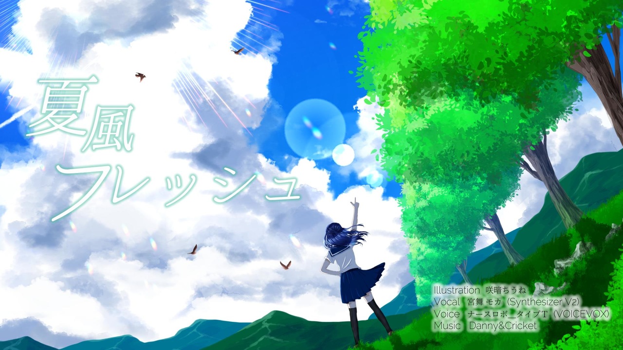 ニコニコ投稿53作目です<br><br>いつでも新鮮な季節、場所、気分!<br><br> ◇◆ ボカコレ2025夏 参加曲!! ◆◇ <br> △▼ 第1弾!!! ▼△<br><br> イラストは、咲暗ちうね 様(Piapro)からお借りしました<br> ありがとうございます!!<br><br>夏風フレッシュ<br><br>Illustration 咲暗ちうね ( <a href="https://piapro.jp/Sakura_1853" target="_blank" rel="noopener nofollow">https://piapro.jp/Sakura_1853</a> )<br>vocal 宮舞モカ(SynthesizerV2)<br>Voice ナースロボ_タイプT(VOICEVOX)<br>Music Danny&Cricket<br><br>twitter <a href="https://twitter.com/DannyAndCricket" target="_blank" rel="noopener nofollow">https://twitter.com/DannyAndCricket</a><br><br>■■■■■■■■■■■■■■■■■■■■■■■■■■■■■■■■■■■■■■■■■■■■■■■■■■■■■■■■■■■■■■■■■■■■■■■■■■■■■■<br>ボカコレ2025夏TOP100ランキング参加曲です。<br>『The VOCALOID Collection(ボカコレ)』はボカロ文化をきっかけに生まれたインターネット等で活動するクリエイターやユーザー、企業などボカロに関わる全ての方が参加できるボカロ文化の祭典です。<br><a href="https://vocaloid-collection.jp/" target="_blank" rel="noopener nofollow">https://vocaloid-collection.jp/</a><br>■■■■■■■■■■■■■■■■■■■■■■■■■■■■■■■■■■■■■■■■■■■■■■■■■■■■■■■■■■■■■■■■■■■■■■■■■■■■■■<br><br>