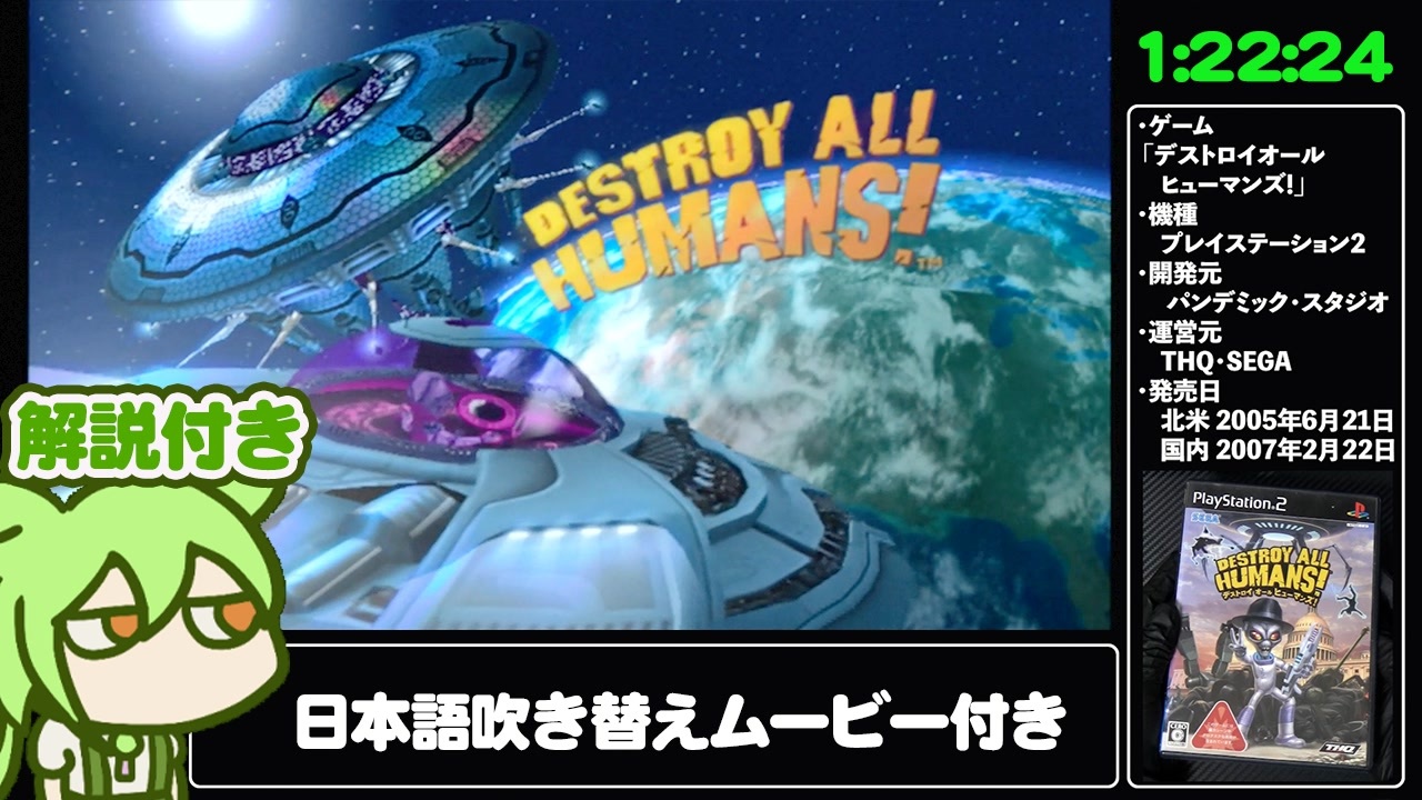 XBOX ONE版「デストロイオールヒューマンズ!」Any%カテゴリのRTA解説動画です。<br><strong>本作にはPS2版のムービーを編集でつけております。</strong><br><br>次回→<a href="https://www.nicovideo.jp/watch/sm45340445" class="watch">sm45340445</a><br><br>・RTA解説動画シリーズ<br>→ <a href="https://www.nicovideo.jp/series/523211?ref=garage_share_other" target="_blank" rel="noopener nofollow">https://www.nicovideo.jp/series/523211?ref=garage_share_other</a><br><br>・生声有りYouTube版<br>→ <a href="https://youtu.be/p1Azo115v-s" target="_blank" rel="noopener nofollow">https://youtu.be/p1Azo115v-s</a><br><br>メインTwitch <a href="https://www.twitch.tv/kirukuro" target="_blank" rel="noopener nofollow">https://www.twitch.tv/kirukuro</a><br>YouTube <a href="https://www.youtube.com/@ZundaGameShow" target="_blank" rel="noopener nofollow">https://www.youtube.com/@ZundaGameShow</a><br>X <a href="https://x.com/kirukuro666" target="_blank" rel="noopener nofollow">https://x.com/kirukuro666</a><br>VOICEVOX:ずんだもん<br><br>・RTA Gate#6<br>→ <a href="https://x.com/RTA_Gate/status/1949839370565079054" target="_blank" rel="noopener nofollow">https://x.com/RTA_Gate/status/1949839370565079054</a>