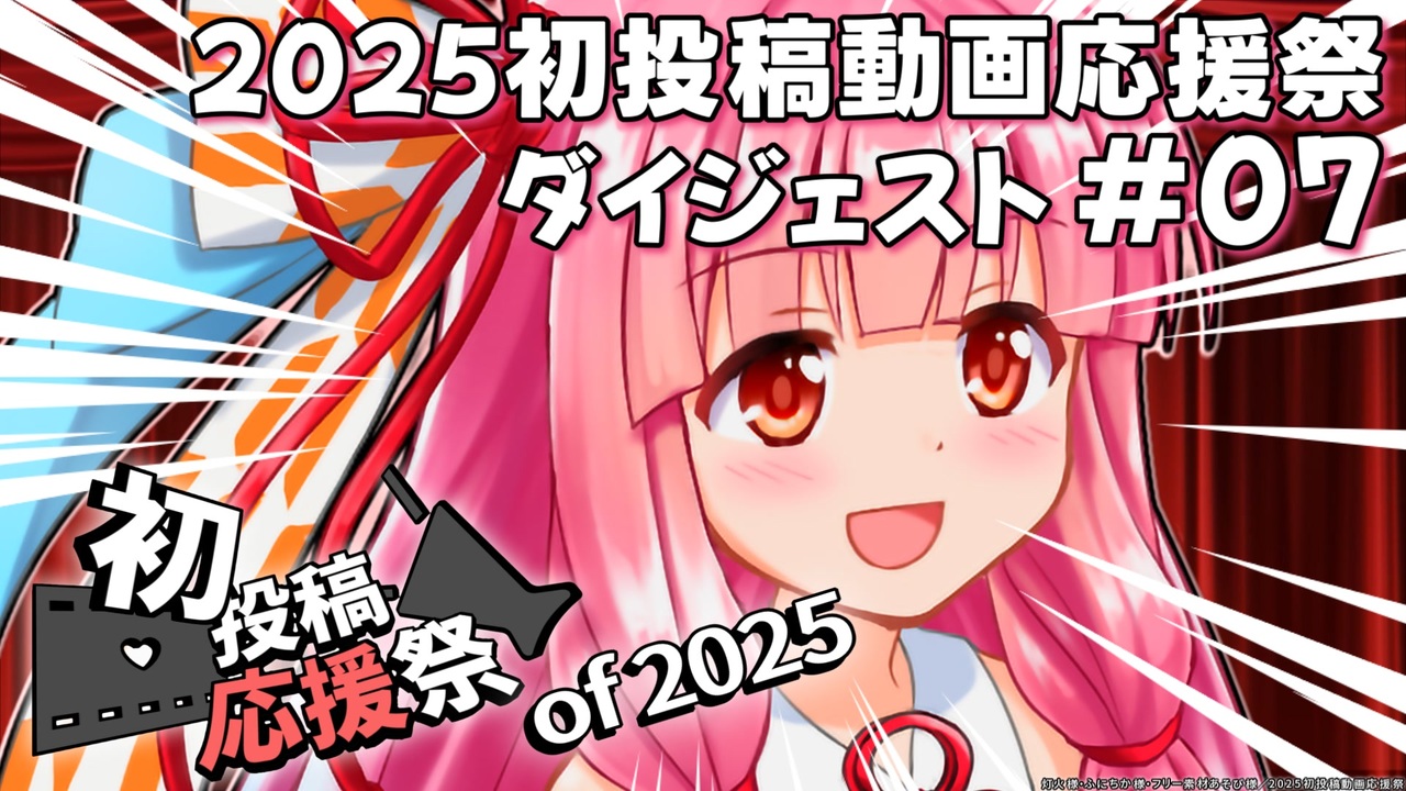 ※2025初投稿動画祭・応援祭はいずれも終了しました。<br>※ダイジェストの一覧 <a href="https://www.nicovideo.jp/user/9061662/mylist/78427843" target="_blank" rel="noopener nofollow">https://www.nicovideo.jp/user/9061662/mylist/78427843</a><br><br>2025初投稿動画応援祭主催公式によるダイジェスト動画の7回目となります。<br><br>■概要動画 <a href="https://www.nicovideo.jp/watch/sm44936211" class="watch">sm44936211</a><br>■詳細 <a href="https://note.com/yukun1007/n/nd3237b9b3898" target="_blank" rel="noopener nofollow">https://note.com/yukun1007/n/nd3237b9b3898</a><br><br>初投稿動画祭の情報とともに、<br>今回紹介致しました作品へのリンクをご用意しました!<br>是非とも、応援の全編もご覧頂けますと嬉しいです!<br><br>■ご紹介作品<br>初投稿の心得について授業してくれる教育実習生<br>作品製作:ミ立さん(<a href="https://www.nicovideo.jp/watch/sm45185230" class="watch">sm45185230</a>)<br><br>劇場動画のfpsは低めにしよう<br>作品製作:末田くさりさん(<a href="https://www.nicovideo.jp/watch/sm45182097" class="watch">sm45182097</a>)<br><br>初心者の視点から考えた応援<br>作品製作:Иagiさん(<a href="https://www.nicovideo.jp/watch/sm45180286" class="watch">sm45180286</a>)<br><br>動画のハードル下ちゃおう!<br>作品製作:セラさん(<a href="https://www.nicovideo.jp/watch/sm45181941" class="watch">sm45181941</a>)<br><br>動画投稿してみよう!<br>作品製作:まほ。さん(<a href="https://www.nicovideo.jp/watch/sm45171904" class="watch">sm45171904</a>)<br><br>BGMは早めに探しておこう!<br>作品製作:アイゼファリカさん(<a href="https://www.nicovideo.jp/watch/sm45181918" class="watch">sm45181918</a>)<br><br>好き勝手に作ればいいと思うよ(+なんかいろいろ話してる)<br>作品製作:yuzuru_sofiaさん(<a href="https://www.nicovideo.jp/watch/sm45181183" class="watch">sm45181183</a>)<br><br>意識の低い動画制作ハウツー!!<br>作品製作:メタルメダルさん(<a href="https://www.nicovideo.jp/watch/sm45180697" class="watch">sm45180697</a>)<br><br>■お願いごと<br>動画の内容に不備などがございましたら、公開後20時間前後以内に主催にご連絡ください。<br>(エンコード時間を鑑み、ギリギリでご連絡時の対応は難しいです…)<br><br>■その他<br>こちらの動画概要欄をご確認ください( <a href="https://www.nicovideo.jp/watch/sm45208656" class="watch">sm45208656</a> ) <br>全作品リスト( <a href="https://www.nicovideo.jp/user/57732881/mylist/78203288" target="_blank" rel="noopener nofollow">https://www.nicovideo.jp/user/57732881/mylist/78203288</a> )<br><br />--------------------<br>いつもどおりのぐっちーです。2023初投稿動画組。<br><br>■連絡先等: <a href="https://lit.link/gtzosns" target="_blank" rel="noopener nofollow">https://lit.link/gtzosns</a><br>■こいつ誰? <a href="https://dic.nicovideo.jp/u/9061662" target="_blank" rel="noopener nofollow">https://dic.nicovideo.jp/u/9061662</a><br><br>■2025初投稿動画応援祭まとめ <a href="https://docs.google.com/spreadsheets/d/1rqA0y3wEtagEH9YL5ug_gyD0y58WOXGrXpWCHHxhp8g" target="_blank" rel="noopener nofollow">https://docs.google.com/spreadsheets/d/1rqA0y3wEtagEH9YL5ug_gyD0y58WOXGrXpWCHHxhp8g</a><br><br>※アイコンは悠香さん、Thanks!