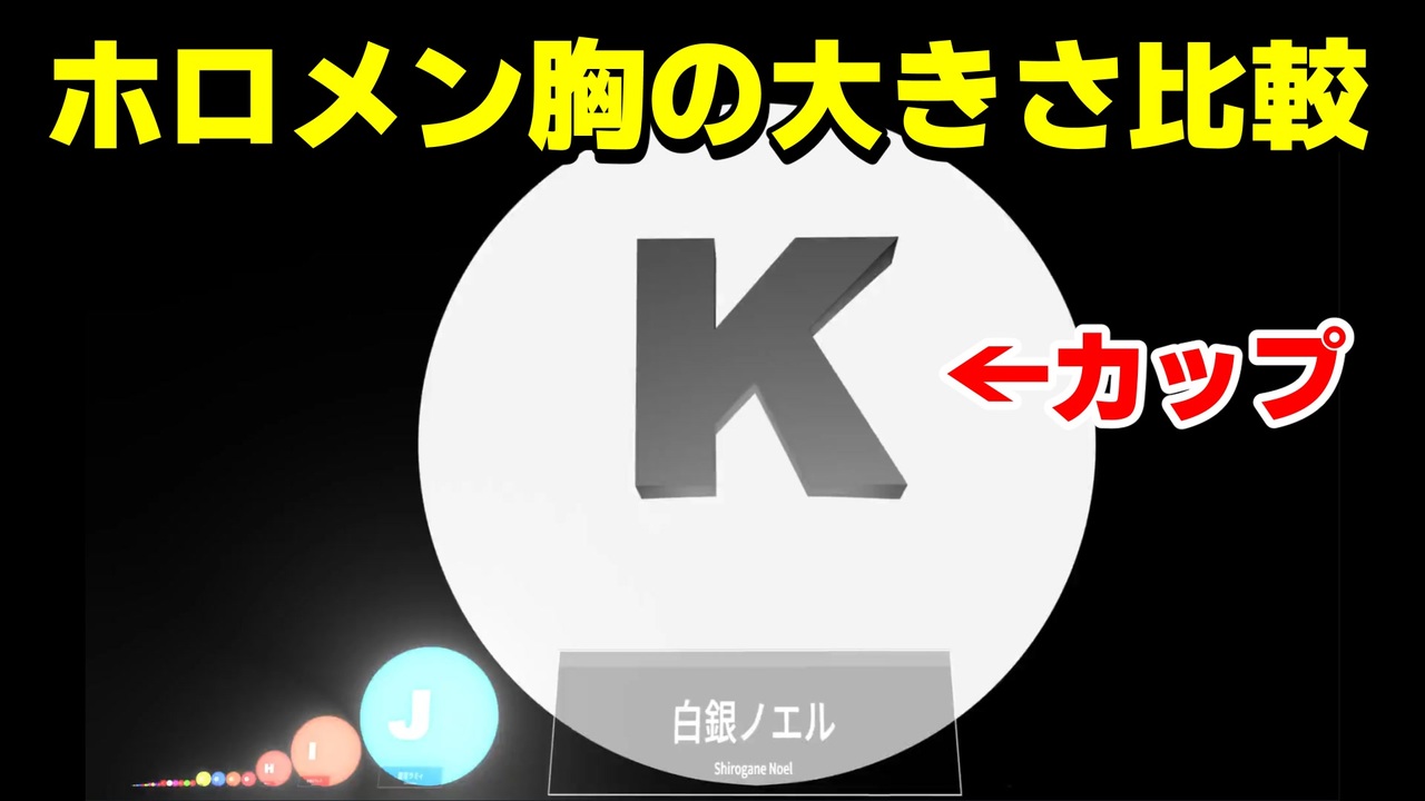 ホロライブのメンバーの胸の大きさを比較しました!<br>リグロスやフロウグロウのはソースがないため割愛させていただきました!<br><br>下記のサイトを元に作成させていただきました!<br><a href="https://yuutan-yuuyuuziteki.com/holobust/3993/" target="_blank" rel="noopener nofollow">https://yuutan-yuuyuuziteki.com/holobust/3993/</a><br><br><br>BGM<br><a href="https://youtu.be/3kK_HGNOo9A" target="_blank" rel="noopener nofollow">https://youtu.be/3kK_HGNOo9A</a><br><br>---------------------------------------<br> A 星街すいせい<br> A 夏色まつり<br> A ラプラスダークネス<br><br> B 風真いろは<br> B 常闇トワ<br><br> C 百鬼あやめ<br> C 白上フブキ<br> C 兎田ぺこら<br> <br> D ときのそら<br> D AZKi<br> D 尾丸ポルカ<br> D 大空スバル<br> D 大神ミオ<br><br> E 姫森ルーナ<br> E 戌神ころね<br> E 猫又おかゆ<br> E さくらみこ<br><br> F 鷹嶺ルイ<br> F 獅白ぼたん<br> F 博衣こより<br> F 赤井はあと<br> F アキ・ローゼンタール<br> F ロボ子さん<br><br> G 角巻わため<br> G 天音こなた<br> G 桃鈴ねね<br> G 宝鐘マリン<br><br> H 癒月ちょこ<br><br> I 不知火フレア<br><br> J 雪花ラミィ<br><br> K 白銀ノエル<br>---------------------------------------