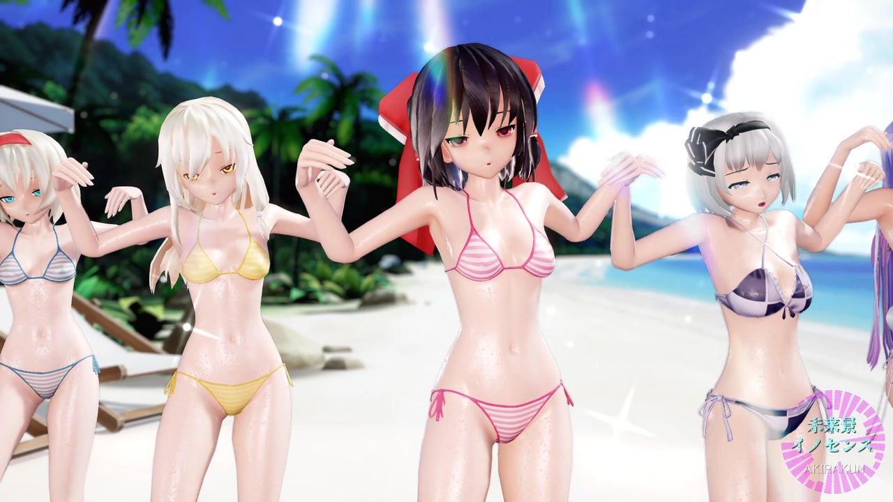 霊夢、魔理沙、アリス、妖夢。鈴仙、5人に踊ってもらいました。この作品は「東方project」の2次創作です。現在、作成リクエストは受け付けていません。<br><br><br>【楽曲】:未来景イノセンス:電ポルP様 <a href="https://www.nicovideo.jp/watch/sm24905365" class="watch">sm24905365</a><br><br>【音源】:なゆごろう様 <a href="https://www.nicovideo.jp/watch/sm25046164" class="watch">sm25046164</a><br><br>【振付参考】:七河みこ様 <a href="https://www.nicovideo.jp/watch/sm25796144" class="watch">sm25796144</a><br><br>【踊り】:愛川こずえ様 <a href="https://www.nicovideo.jp/watch/sm30205031" class="watch">sm30205031</a><br><br>【モーション・カメラ】:なつき様 <a href="https://www.nicovideo.jp/watch/sm31283317" class="watch">sm31283317</a><br><br><br>■スカイドーム<br>夕焼けの空:ばんぞく様 <a href="https://seiga.nicovideo.jp/seiga/im11449494" target="_blank" rel="noopener">im11449494</a><br><br>■ステージ<br>海辺:ムムム様 <a href="https://seiga.nicovideo.jp/seiga/im11271750" target="_blank" rel="noopener">im11271750</a><br><br>■モデル<br>霊夢、魔理沙、アリス:にがもん様<br>・衣装:こだまちゃん Ver1.0:RGBA (RGB-CMYK)様 <a href="https://www.nicovideo.jp/watch/sm44694853" class="watch">sm44694853</a><br>妖夢:アールビット様<br>鈴仙:フリック様<br>・衣装:アールビット様<br><br>■エフェクト<br>Ray-mmd-1.5.2:Rui様<br>初心者マテリアル:さらしな様<br>肌マテリアル:MARUSU様<br>AutoLuminous4:そぼろ様<br>空中に漂う埃:化身バレッタ様<br>ikBokeh_v020a:ikeno様<br>ScreenTex改変 動く入射光:のりしお様<br><br><br>MikuMikuDance:樋口優様<br>MMEffect :舞力介入P様<br>PMDE、PmxE:極北P様<br>AviUtl :KENくん様<br>・Aviutl + x264guiExでエンコード:rigaya様<br>Ut Video Codec Suite:ゆーむP様<br>上海アリス幻楽団・東方project(ZUN様)<br><br><br>mylist ③<a href="https://www.nicovideo.jp/mylist/75586824" target="_blank" rel="noopener">mylist/75586824</a> ② <a href="https://www.nicovideo.jp/mylist/72970530" target="_blank" rel="noopener">mylist/72970530</a> ① <a href="https://www.nicovideo.jp/mylist/63690967" target="_blank" rel="noopener">mylist/63690967</a> 旧 <a href="https://www.nicovideo.jp/mylist/61238351" target="_blank" rel="noopener">mylist/61238351</a><br><br> ※動画の転載は禁止です。 <br>Attention,Unauthorized reproduction prohibited!!