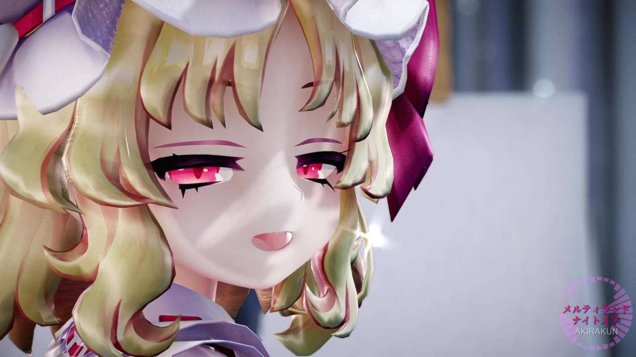 フランちゃんに踊ってもらいました。この作品は「東方project」の2次創作です。<br>現在、作成リクエストは受け付けていません。<br><br><br>【原曲】:「メルティランドナイトメア」:はるまきごはん様 <a href="https://www.nicovideo.jp/watch/sm32748202" class="watch">sm32748202</a><br><br>【振付・トレス元】:りるあ様 <a href="https://www.nicovideo.jp/watch/sm38223499" class="watch">sm38223499</a><br><br>【モーション】:づなうじ様 <a href="https://www.nicovideo.jp/watch/sm38495124" class="watch">sm38495124</a><br><br>【リップ・目線・表情】:ノン様(モーション同梱)<br><br>【カメラ】:木村まこと様 <a href="https://www.nicovideo.jp/watch/sm44098659" class="watch">sm44098659</a><br><br><br>■ステージ<br>デッサンステージ:栗ごはん様 <a href="https://seiga.nicovideo.jp/seiga/im11653272" target="_blank" rel="noopener">im11653272</a><br><br>■モデル<br>Miy式フランドール・スカーレット:Miy様 <a href="https://www.nicovideo.jp/watch/sm42256005" class="watch">sm42256005</a><br><br>■エフェクト<br>Ray-mmd-1.5.2:Rui様<br>初心者マテリアル:さらしな様<br>肌マテリアル:MARUSU様<br>AutoLuminous4:そぼろ様<br>空中に漂う埃:化身バレッタ様<br>ikBokeh_v020a:ikeno様<br><br><br>MikuMikuDance:樋口優様<br>MMEffect :舞力介入P様<br>PMDE、PmxE:極北P様<br>AviUtl :KENくん様<br>・Aviutl + x264guiExでエンコード:rigaya様<br>Ut Video Codec suite:ゆーむP様<br>上海アリス幻楽団・東方project(ZUN様)<br><br>mylist ③<a href="https://www.nicovideo.jp/mylist/75586824" target="_blank" rel="noopener">mylist/75586824</a> ② <a href="https://www.nicovideo.jp/mylist/72970530" target="_blank" rel="noopener">mylist/72970530</a> ① <a href="https://www.nicovideo.jp/mylist/63690967" target="_blank" rel="noopener">mylist/63690967</a> 旧 <a href="https://www.nicovideo.jp/mylist/61238351" target="_blank" rel="noopener">mylist/61238351</a><br><br>※動画の転載は禁止です。<br>Attention,Unauthorized reproduction prohibited!!