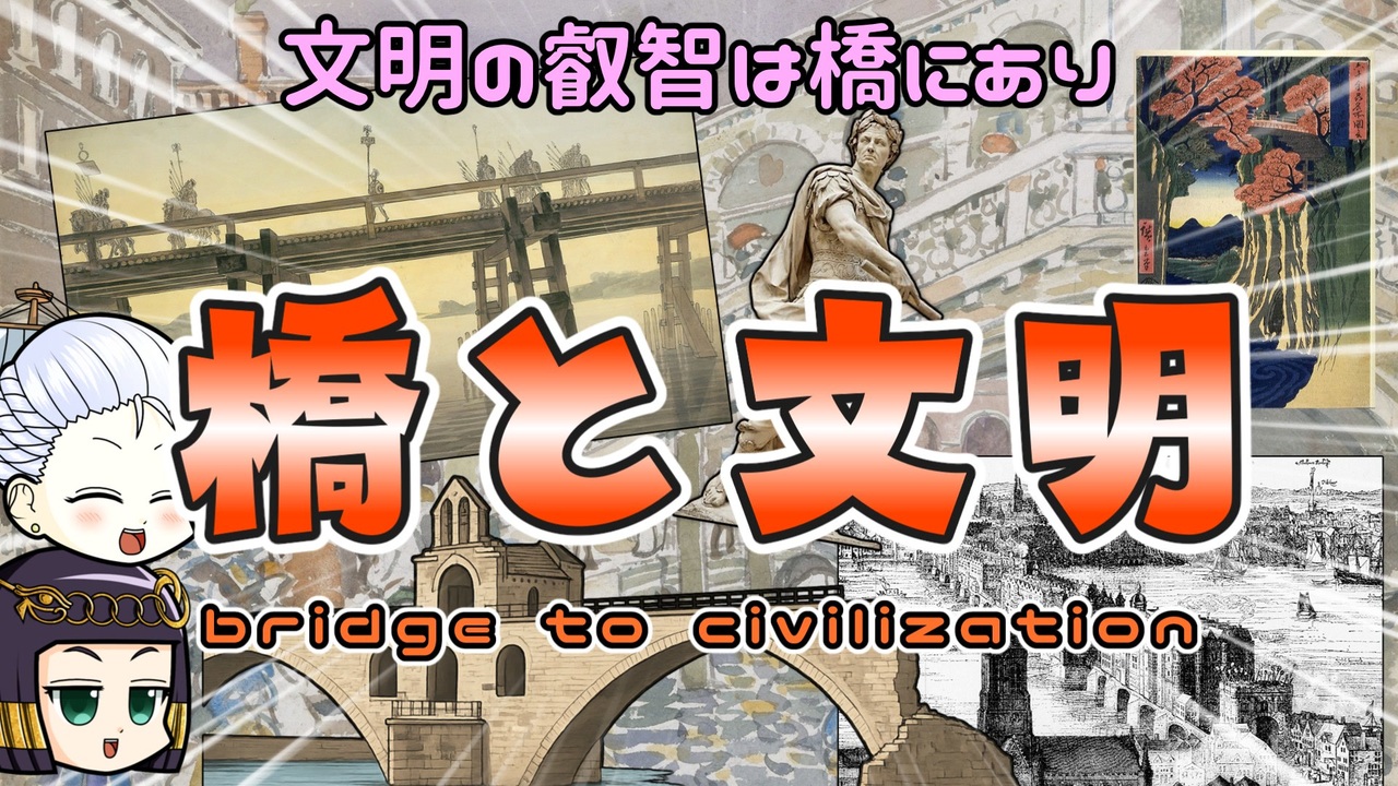 マリーは国際ニュースに敏感なようです。 <br>橋の話です。橋 幸夫じゃないよ。 <br>下手すると道路と一体化しすぎていて、現代では渡ったことにすら気づかないまである存在・橋。 <br><br>でも橋を架けるって大変なことでもあるし、重要なことでもあったんですよこれがまた。 <br>この動画を観れば、昔の物語で橋が重要なシーンの舞台に選ばれがちだった理由がわかるかもしれないし、わからないかもしれない。<br><br>☆ファンアートありがとうございました☆ はれみくらさんのアカウント↓↓ <br>Twitter(一説にはX)→ <a href="https://x.com/haremikura" target="_blank" rel="noopener nofollow">https://x.com/haremikura</a> <br><br>中世の橋の建設風景(カレル橋)の動画↓↓ <br><a href="https://youtu.be/nJgD6gyi0Wk?si=tqeuT4mkRyzLhA8r" target="_blank" rel="noopener nofollow">https://youtu.be/nJgD6gyi0Wk?si=tqeuT4mkRyzLhA8r</a> <br><br>☆ニコニコチャンネル「モンド・ヒストリカの離宮」 <br>→<a href="https://ch.nicovideo.jp/mond-historica" target="_blank" rel="noopener nofollow">https://ch.nicovideo.jp/mond-historica</a> <br><br>今回の主要参考文献: <br>合田良實(1996)『土木と文明』鹿島出版会 ジョゼフ・ギース/フランシス・ギース(<br>2012)『大聖堂・製鉄・水車 中世ヨーロッパのテクノロジー』栗原泉訳 講談社 <br>J・E カウフマン/H・W・カウフマン(2012)『中世ヨーロッパの城塞』中島智章訳 マール社 <br>カエサル(1964)『ガリア戦記』近山金次訳 岩波書店<br><br>その他 Wikipediaなど<br />━━━━━━━━━━━━━━━━━━━━━<br><br>この動画はクリエイティブ・コモンズ継承(CC-BY-SA)ライセンスの素材を使用して制作しています。(<a href="https://creativecommons.org/licenses/by-sa/4.0/)" target="_blank" rel="noopener nofollow">https://creativecommons.org/licenses/by-sa/4.0/)</a><br>規約に基づき、この動画もCC-BY-SA 4.0 のもとで公開します。<br><br>投稿者共通情報☆彡<br><br>BGM, SE:ニコニ・コモンズ様<br><a href="http://commons.nicovideo.jp/" target="_blank" rel="noopener nofollow">http://commons.nicovideo.jp/</a><br>魔王魂様<br><a href="https://maoudamashii.jokersounds.com/" target="_blank" rel="noopener nofollow">https://maoudamashii.jokersounds.com/</a><br>Audiostock様<br><a href="https://audiostock.jp/" target="_blank" rel="noopener nofollow">https://audiostock.jp/</a><br><br>立ち絵 霊夢・魔理沙(黒子式):nicotalk様<br><a href="http://www.nicotalk.com/charasozai.html" target="_blank" rel="noopener nofollow">http://www.nicotalk.com/charasozai.html</a><br><br>立ち絵 パトラ、マリー、アン、メアリ:ライフライフ様<br><a href="https://0801lifelife.tumblr.com/" target="_blank" rel="noopener nofollow">https://0801lifelife.tumblr.com/</a><br><br>使用ツール1:ゆっくりムービーメーカー4<br><a href="https://manjubox.net/ymm4/" target="_blank" rel="noopener nofollow">https://manjubox.net/ymm4/</a><br><br>使用ツール2:AviUtl<br><a href="http://spring-fragrance.mints.ne.jp/aviutl/" target="_blank" rel="noopener nofollow">http://spring-fragrance.mints.ne.jp/aviutl/</a><br><br>各時代の地図 : World History Maps & Timelines <br><a href="http://geacron.com/home-en/" target="_blank" rel="noopener nofollow">http://geacron.com/home-en/</a><br><br>ゆっくりボイスについて:AquesTalkライセンス取得済み<br><br>キャラクターボイス<br>アン・ボニー:羽ノ華(A.I.VOICE)<br>メアリ・リード:琴葉 葵(A.I.VOICE)<br>クレオパトラ:結月ゆかり(VOICEROID2)<br>マリー‐アントワネット:東北きりたん (VOICEROID EX)<br>その他キャラ:青山龍星(A.I.VOICE)、伊織弓鶴(A.I.VOICE2)、栗田まろん(A.I.VOICE)、宮舞モカ(VOICEPEAK)、フリモメン(VOICEPEAK)<br><br><br><br>その他フリー素材ご提供元の皆様に圧倒的感謝<br>