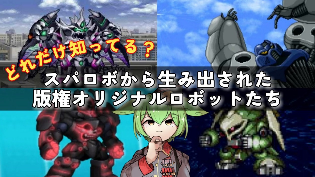 総統「待っていたぜデビルマシン」 <br>今回は家庭用で発売されたスパロボを中心に版権オリジナルロボを特集します。 <br><br>今日のいいね【好きな版権オリロボ】<br /><span style="color: #ff0000; font-size: 16px;"><strong>毎週金曜日更新!</strong></span><br>不定期に火曜も更新<br>※動画上での引用画像の著作権は権利者様にあります。<br><strong>・クリエイターサポート<br><a href="https://creator-support.nicovideo.jp/registration/46903212" target="_blank" rel="noopener nofollow">https://creator-support.nicovideo.jp/registration/46903212</a></strong><br>・ロボットアニメ好きなずんだもん解説<br><a href="https://www.nicovideo.jp/series/350806" target="_blank" rel="noopener">series/350806</a><br><strong>・Twitter(X)</strong><br><a href="https://twitter.com/yasnos1173" target="_blank" rel="noopener nofollow">https://twitter.com/yasnos1173</a><br><span style="font-size: 16px;">・</span><span style="color: #ff0000; font-size: 16px;"><strong><i>YouTube先行投稿</i></strong></span><br><span style="font-size: 16px;"><a href="https://www.youtube.com/@RobotAnimeFreakZundamon" target="_blank" rel="noopener nofollow">https://www.youtube.com/@RobotAnimeFreakZundamon</a></span><br>・小説<br><a href="https://kakuyomu.jp/users/yasnos" target="_blank" rel="noopener nofollow">https://kakuyomu.jp/users/yasnos</a><br>・VOICEVOX<br>ずんだもん/あんこもん<br><a href="https://seiga.nicovideo.jp/seiga/im10993036" target="_blank" rel="noopener nofollow">https://seiga.nicovideo.jp/seiga/im10993036</a><br>九州そら<br><a href="https://seiga.nicovideo.jp/seiga/im10968770" target="_blank" rel="noopener nofollow">https://seiga.nicovideo.jp/seiga/im10968770</a><br>春日部つむぎ<br><a href="https://seiga.nicovideo.jp/seiga/im10867872" target="_blank" rel="noopener nofollow">https://seiga.nicovideo.jp/seiga/im10867872</a><br>雨晴はう<br><a href="https://seiga.nicovideo.jp/seiga/im11181595" target="_blank" rel="noopener nofollow">https://seiga.nicovideo.jp/seiga/im11181595</a><br>東北きりたん<br><a href="https://seiga.nicovideo.jp/seiga/im6459388" target="_blank" rel="noopener nofollow">https://seiga.nicovideo.jp/seiga/im6459388</a><br>Voidoll(CV:丹下桜)<br>東北ずん子<br><a href="https://seiga.nicovideo.jp/seiga/im9118240" target="_blank" rel="noopener">im9118240</a><br><br><a href="https://seiga.nicovideo.jp/seiga/im10993036" target="_blank" rel="noopener">im10993036</a> <a href="https://seiga.nicovideo.jp/seiga/im10968770" target="_blank" rel="noopener">im10968770</a> <a href="https://seiga.nicovideo.jp/seiga/im10867872" target="_blank" rel="noopener">im10867872</a> <a href="https://seiga.nicovideo.jp/seiga/im11181595" target="_blank" rel="noopener">im11181595</a><br><a href="https://seiga.nicovideo.jp/seiga/im6459388" target="_blank" rel="noopener">im6459388</a> <a href="https://seiga.nicovideo.jp/seiga/im11511869" target="_blank" rel="noopener">im11511869</a>