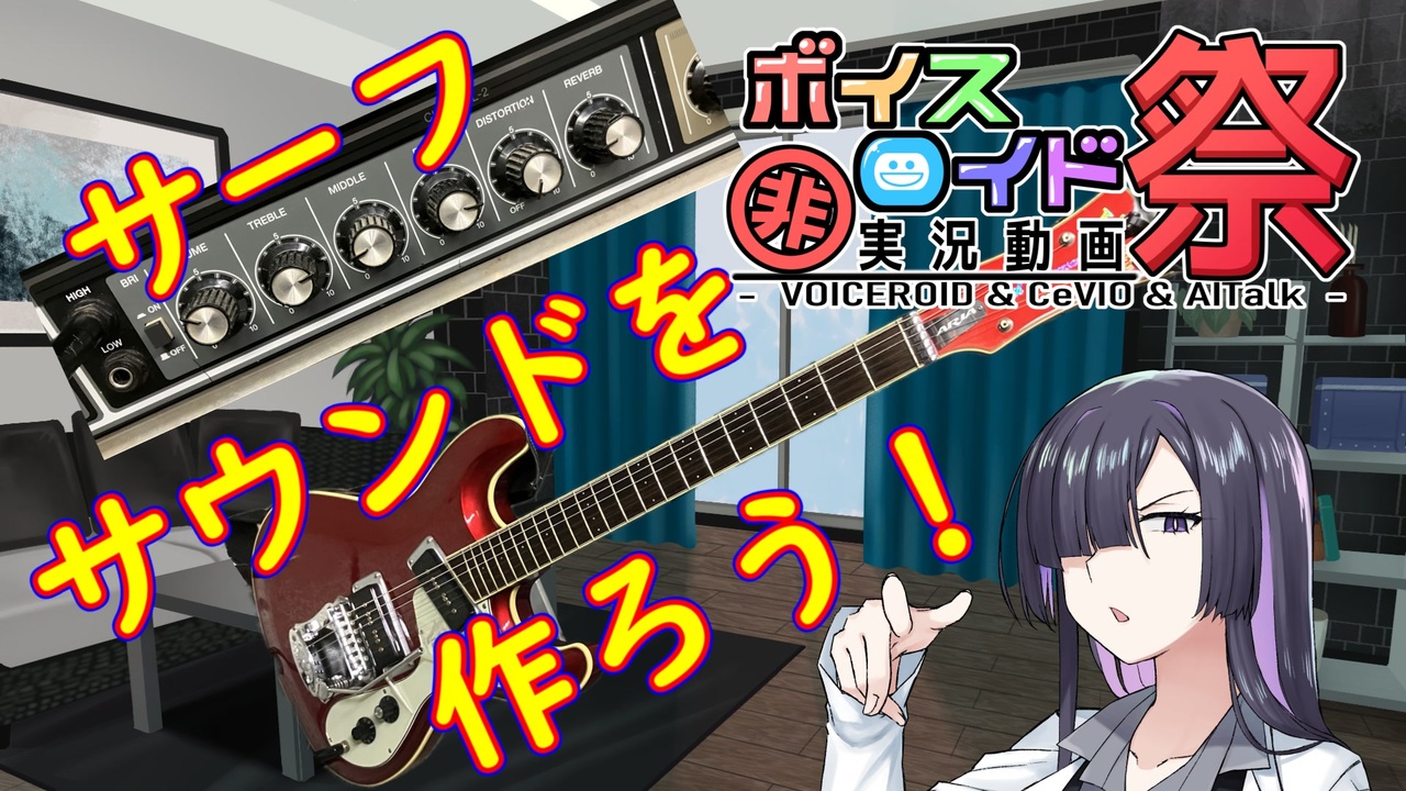 第11回ひじき祭 開催おめでとうございます!<br><br>今回はテケテケに必要なサーフなサウンドを作っていきましょう<br>アンプの設定やピックアップを調整して迫力あるサウンドを作っていくので<br>是非皆さんもチャレンジしてみてくださいね<br><br>~~お借りした作品集~~<br><編集ソフト><br>Aviutl<br><br><音声><br>夜語トバリ:A.I.Voice<br><br><フォント><br>UDデジタル教科書体NP<br><br><夜語トバリ><br>立ち絵・背景:CF返礼品<br><br><写真・動画><br>本人撮影(無断転載を禁じます)<br><br><BGM><br>Woodgrain line <br>ウッドベース / JAZZ / 日常BGM<br>:Ryo Lion様:<a href="https://commons.nicovideo.jp/works/nc188323" target="_blank" rel="noopener">nc188323</a><br><br>和太鼓(ドン!):sanche様:<a href="https://commons.nicovideo.jp/works/nc10485" target="_blank" rel="noopener">nc10485</a><br><br><br>茶屋にて【和風】:MATSU様:<a href="https://commons.nicovideo.jp/works/nc97701" target="_blank" rel="noopener">nc97701</a><br><br>なんだか明るい感じのワルツ:けむり様:<a href="https://commons.nicovideo.jp/works/nc223745" target="_blank" rel="noopener">nc223745</a><br><br>【和風】風切【疾走感】;ゆうり様:<a href="https://commons.nicovideo.jp/works/nc164213" target="_blank" rel="noopener">nc164213</a><br><br>昨日は月食だったそうですね:あだまんたいと様<br>:<a href="https://commons.nicovideo.jp/works/nc257912" target="_blank" rel="noopener">nc257912</a><br><br><ロゴ><br>非実況動画祭(ひじき祭)ロゴ(白枠あり):<br>非実況動画祭_運営御中:<a href="https://commons.nicovideo.jp/works/nc231508" target="_blank" rel="noopener">nc231508</a><br><br><いいね><br>いいねボタン:ガッkoya様:<a href="https://commons.nicovideo.jp/works/nc255276" target="_blank" rel="noopener">nc255276</a><br><br>