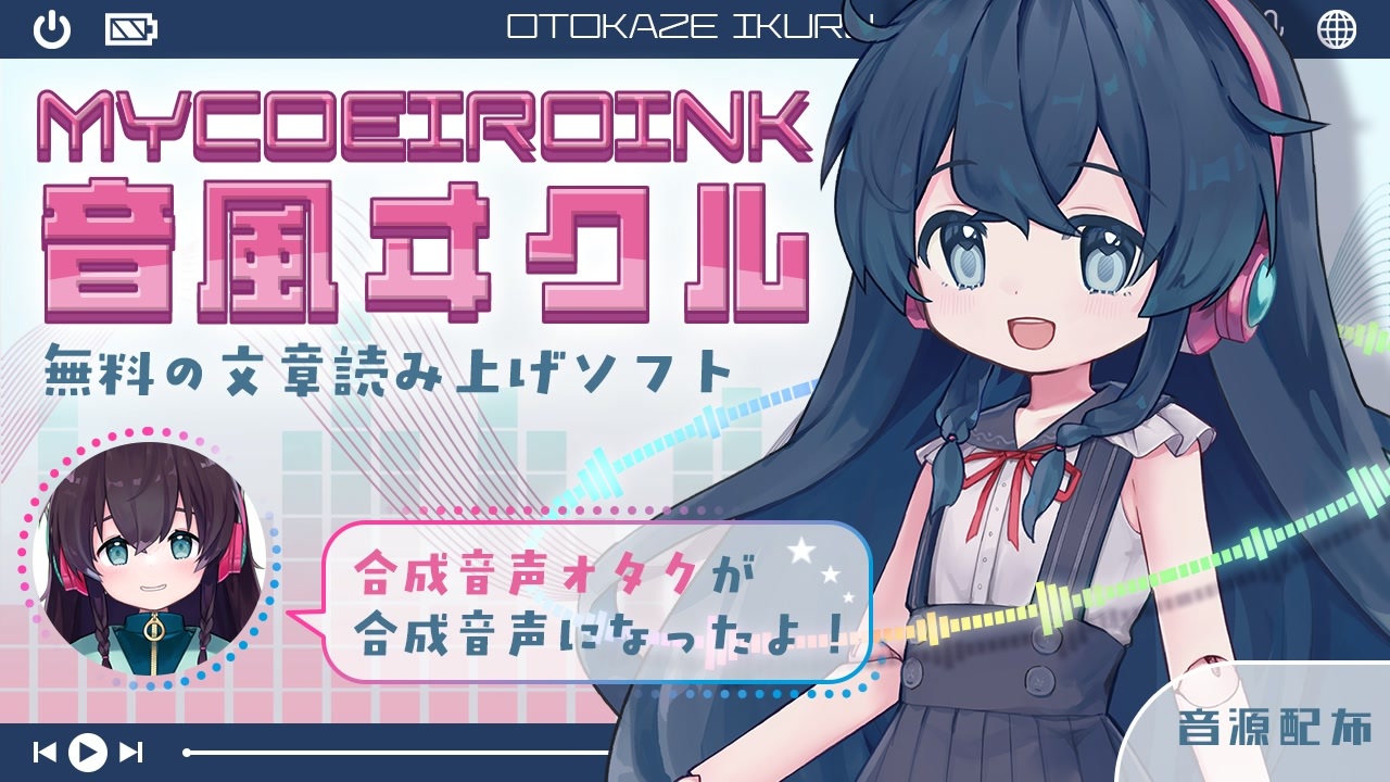 バーチャルボカロリスナー御丹宮くるみの声を元にした合成音声「音風ヰクル」。<br>このたび、MYCOEIROINKでおしゃべりが出来るようになりました!<br>合成音声が大好きな合成音声の女の子です。<br><br>CV:御丹宮くるみ / 立ち絵制作:御丹宮くるみ<br>かなり自由度高めの規約に設定していますので、ぜひ音風ヰクルをインターネットでおもちゃにしてください!<br><br>■COEIROINK公式サイト<br><a href="https://coeiroink.com/" target="_blank" rel="noopener nofollow">https://coeiroink.com/</a><br>■MYCOEIROINK 音風ヰクル 音源配布所<br><a href="https://onikuru.info/mycoeiroink_ofikuru/" target="_blank" rel="noopener nofollow">https://onikuru.info/mycoeiroink_ofikuru/</a><br>↑公式立ち絵や規約もこちらでご確認ください!<br><br>【そのほかの音風ヰクル】<br>■UTAU音源 音風ヰクル<br><a href="https://onikuru.info/ofikuru/" target="_blank" rel="noopener nofollow">https://onikuru.info/ofikuru/</a><br>■NNSVS・ENUNU 等 AIシンガー御丹宮くるみ(音風ヰクルとして使用OK!)<br><a href="https://onikuru.info/db-download/" target="_blank" rel="noopener nofollow">https://onikuru.info/db-download/</a><br><br>ーーー<br><br>X:<a href="https://x.com/oniku_kurumi" target="_blank" rel="noopener nofollow">https://x.com/oniku_kurumi</a><br>ぼすきー:<a href="https://voskey.icalo.net/@oniku_kurumi" target="_blank" rel="noopener nofollow">https://voskey.icalo.net/@oniku_kurumi</a><br><br>サムネイル制作:月下パルさん<br>ジングル制作:夜琴 托さん<br>テーマBGM制作:荷戸眠しーたさん