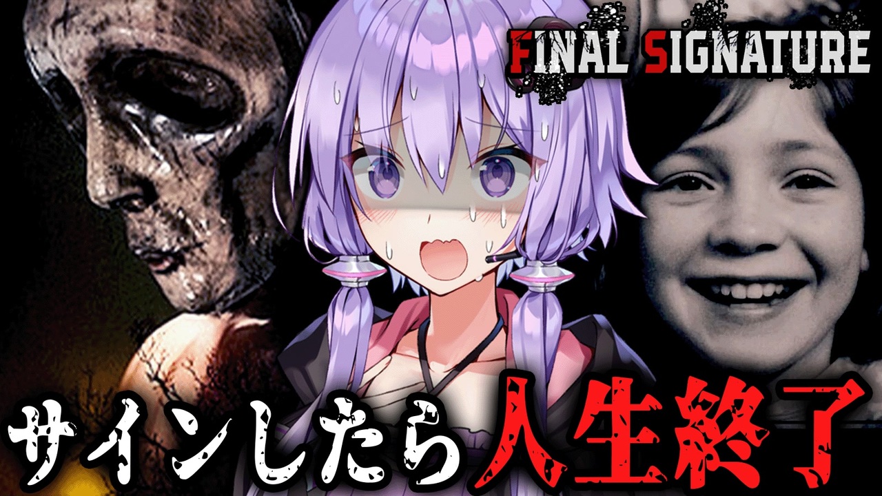 次:<a href="https://www.nicovideo.jp/watch/sm45315666" class="watch">sm45315666</a><br>再生リスト:<a href="https://www.nicovideo.jp/series/528249" target="_blank" rel="noopener">series/528249</a><br><br>●動画シリーズ<br><a href="https://www.nicovideo.jp/user/115875187/series" target="_blank" rel="noopener nofollow">https://www.nicovideo.jp/user/115875187/series</a><br><br>▶ゲームページ<br><a href="https://store.steampowered.com/app/3600200/Final_Signature/" target="_blank" rel="noopener nofollow">https://store.steampowered.com/app/3600200/Final_Signature/</a><br><br>#ボイロ実況 #ボイスロイド #ホラーゲーム<br><br>お借りしたもの<br>結月ゆかり(紀常様)<br>紲星あかり(新島秋一様)<br><a href="https://seiga.nicovideo.jp/seiga/im10850288" target="_blank" rel="noopener">im10850288</a> <a href="https://seiga.nicovideo.jp/seiga/im7753179" target="_blank" rel="noopener">im7753179</a><br>BGM:<a href="https://dova-s.jp/" target="_blank" rel="noopener nofollow">https://dova-s.jp/</a><br><br>Twitter(しまねげーむず):<a href="https://twitter.com/natsumeeeee_ch" target="_blank" rel="noopener nofollow">https://twitter.com/natsumeeeee_ch</a>