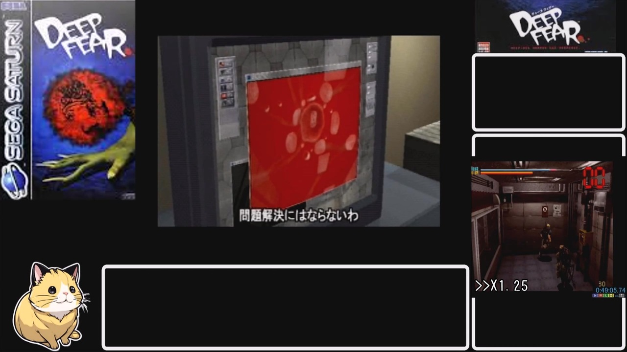 RTA第15弾はSS 「Deep Fear」です<br>移動の間を埋める編集技術がありません許して!<br>淫夢を入れるとニコニコから怒られるとかこれもぅわかんねぇなぁ・・・<br><br>プレイ環境<br>SS 実機<br><br>録画環境<br>キャプチャ機器 GV-USB2 アナログ端子<br>キャプチャソフト アマレコTV4.11<br>録画ソフト OBS31.0.1<br><br>前回 <a href="https://www.nicovideo.jp/watch/sm45297331" class="watch">sm45297331</a><br>次回 <a href="https://www.nicovideo.jp/watch/sm45335188" class="watch">sm45335188</a><br><br>ようつべ無編集版 <a href="https://youtu.be/fTWy3MrkVfw" target="_blank" rel="noopener nofollow">https://youtu.be/fTWy3MrkVfw</a><br><br>今まで上げたRTA Part1リンク<a href="https://www.nicovideo.jp/mylist/71360071" target="_blank" rel="noopener">mylist/71360071</a><br><br><a target="_blank" href="https://qa.nicovideo.jp/faq/show/19424?site_domain=default" style="font-size: 13px;color: #657586; text-decoration: underline; line-height: 1.4">この動画は投稿者によって修正されました</a>