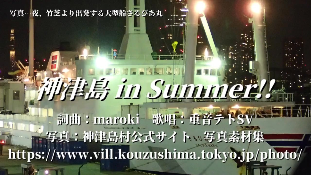 投稿者名:maroki(まろき)<br>動画のタイトル:神津島 in Summer!!(こうづしま いん さまー)<br>■ボカコレ2025夏ex参加曲です。<br>『The VOCALOID Collection(ボカコレ)』はボカロ文化をきっかけに生まれたインターネット等で活動するクリエイターやユーザー、企業などボカロに関わる全ての方が参加できるボカロ文化の祭典です。<br><a href="https://vocaloid-collection.jp/" target="_blank" rel="noopener nofollow">https://vocaloid-collection.jp/</a><br>■神津島は15年以上前からかよっているくらい大好きでございます。皆様も是非行ってみてください。<br>■写真は神津島村公式サイトの「写真素材集」より。 <a href="https://www.vill.kouzushima.tokyo.jp/photo/" target="_blank" rel="noopener nofollow">https://www.vill.kouzushima.tokyo.jp/photo/</a><br><br>(歌詞)<br><br>南の島って言ったってハワイじゃないのかよ<br>なんて言っちゃったけど来てみたら<br>ここってEじゃんGジャン最高じゃん!<br><br>雑魚寝で疲れた身体には太陽が黄色すぎるけど<br>多幸湾の水で顔洗えば<br>今わたし気分爽快だよ!<br><br>パッションフルーツ食べながら歩く山道で<br>トカゲにあいさつされたよ<br>楽しいね 楽しいね!<br><br>あー神津島 夢が叶う場所<br>上り下りがきついけど<br>がんばって歩けばひろがるパノラマ<br><br>あー神津島<br>白い砂浜でカニを追いかけた夏を<br>一生 忘れられないよ!<br><br>天上山に登ったって何かあるのかよ<br>なんて言っちゃったけど来てみたら<br>ここってビューティフル、ワンダフル、しっぽふる!<br><br>遠くに見える島々を見ながら飲む<br>盛若ほど旨い酒はないだなんて<br>パパは言うけど何のことかわかんないや<br><br>赤崎遊歩道で思い切り飛び込んで<br>温泉でほっと一息<br>最高だね 最高だね!<br><br>あー神津島 神が集う島<br>コガネムシがうるさいけど<br>澄み切った空気にきらめく星空<br><br>あー神津島<br>タカベ釣り上げて頭なでられた夏を<br>一生 忘れられないよ!<br>忘れられるわけがないよ!<br>