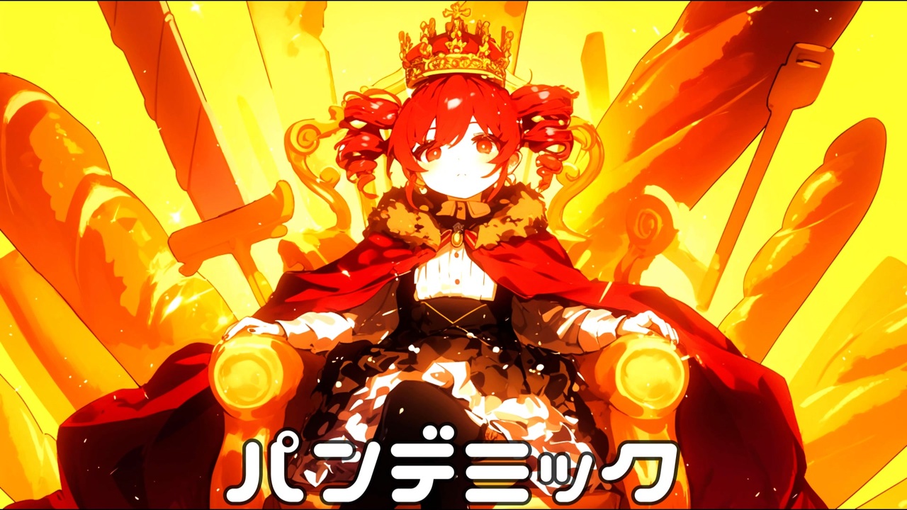 「パンの女王に跪け」<br><br>パンの女王に跪け<br>パッパカパンダパンデミック<br>イーストに選ばれし民よ<br>生焼けの愛じゃ許されないわ<br>バゲットよりも硬い忠誠を<br>信じる者は腹が満たされるわ<br><br>パッパカパンダパンデミック<br>咥えた瞬間とろける<br>蜜に沈めた支配者のレシピ<br>こねすぎの愛 絶対王政<br>焼きたてのあたし<br>まだ欲しいの?<br>No No<br><br>朝焼けよりも早く祈りなさい<br>噛みしめるほどに逆らえないわ<br>この甘さこそが 神の証よ<br>パンよ全てを赦し賜え<br><br>手を伸ばしなさい 迷いは不要<br>聖なる律法は ただひとつだけ<br>お前の咀嚼が 信仰の証<br>口づけのように 噛みしめなさい<br>罪と呼ぶならもっとちょうだい<br>何もかもが救いになる さぁ<br><br>パンの女王に跪け<br>パッパカパンダパンデミック<br>クラストに拒まれし民よ<br>嚙み砕けぬなら舌を捧げよ<br>甘い懺悔は恥と知れよ<br>快楽ごときが 逆らえるものか<br><br>パッパカパンダパンデミック<br>救済 欺く宴<br>血でこねあげた 生贄のレシピ<br>目隠しの愛 絶対粛正<br>醗酵中の咎火<br>もう欲しいの?<br>No No<br><br>誰かに食べてほしかっただけ<br>からっぽの胸じゃ ふくらまないの<br>全部あたしの願いだったのに<br>届いたのは飢えばかり<br><br>パッパカパンダパンデミック<br>我が名を偽りの民よ<br>焼かぬ愛など価値なんかないわ<br>絶対の命 膝をつけよ<br>呪いの味すら 美味しくなるから<br><br>パッパカパンダパンデミック<br>神託 生地と成り果てて<br>許しの皮を 被った断罪者<br>欺瞞で編んだ 永遠のドグマ<br>焼きあがったのに<br>まだ噛まないの?<br>No No