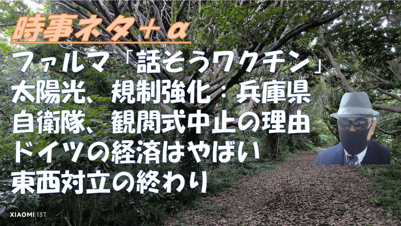 ◆明治製菓ファルマ<br>< あなたにとって、ワクチンとは? ><br><br>◆リチャード・コシミズ<br>カミソリを飲み込んだような喉の痛み。<br><br>◆親日の一般人チャンネル<br>頭の悪さが際立つ立憲 参政党が野党第一党へ<br><br><br>◆和田秀樹<br>【夏休み】デンマーク旅行で感じたこと<br><br><br>イーロン・マスクがアメリカ党を延期 MAGAとJDヴァンスとの関係重視 トランプと再合体【及川幸久】<br><br>◆深田萌絵<br>国民主権禁止、基本的人権削除。 〇〇改正はディープステートが画策する国民奴隷化計画か? うた桜子氏 #423<br><br><br>SATORISM TV LIVE.197「ウクライナ戦争を終わらせない中国って話」<br><br>◆読売新聞<br>石破首相が「きれいに身を引ける」タイミングは…総裁選前倒し判断に向け自民選管始動、退陣表明へ圧力強まる<br><br>兵庫県、太陽光パネル設置の規制を強化<br><br>防衛費8.8兆円台要求へ 過去最大、無人機大量配備<br><br>防衛省が自衛隊「観閲式」の中止を発表…「軍靴の音が遠ざかった」との声に専門家は「とんでもない。むしろ“軍靴の音が聞こえる”時代に突入したと肝に銘じるべき」<br><br>◆斎藤てつお(公明党)<br>今朝、来日中のビル・ゲイツ氏と面会いたしました<br><br>公明党の岡本三成(陳三成)は、ウォール街グローバリストの代理人です。日本人を偽装した、中華系ユダヤ人みたいなものです。<br><br>堀江貴文氏、参政党神谷代表に指摘「この人はわかっててバカを煽って党員にしてるのか…」<br><br>ドイツの経済はみんなが思ってる以上にやばい。<br><br>◆Chihiro Sato-Schuh<br>【東西対立の終わり】<br><br>#ビル・ゲイツ<br>#自衛隊<br>#観閲式中止<br>#太陽光パネル<br>#政経プラットフォーム<br>#イーロン・マスク<br>#和田秀樹<br>#石破茂<br>#ワクチン